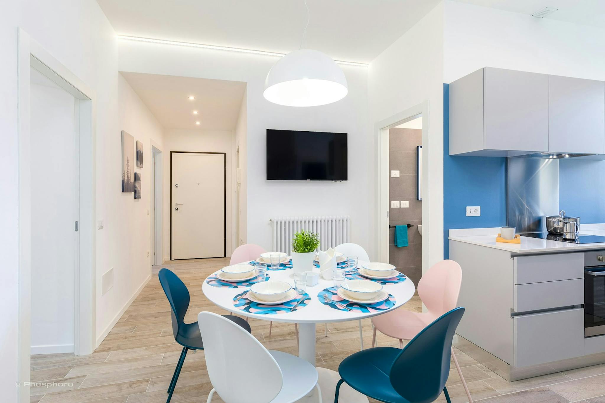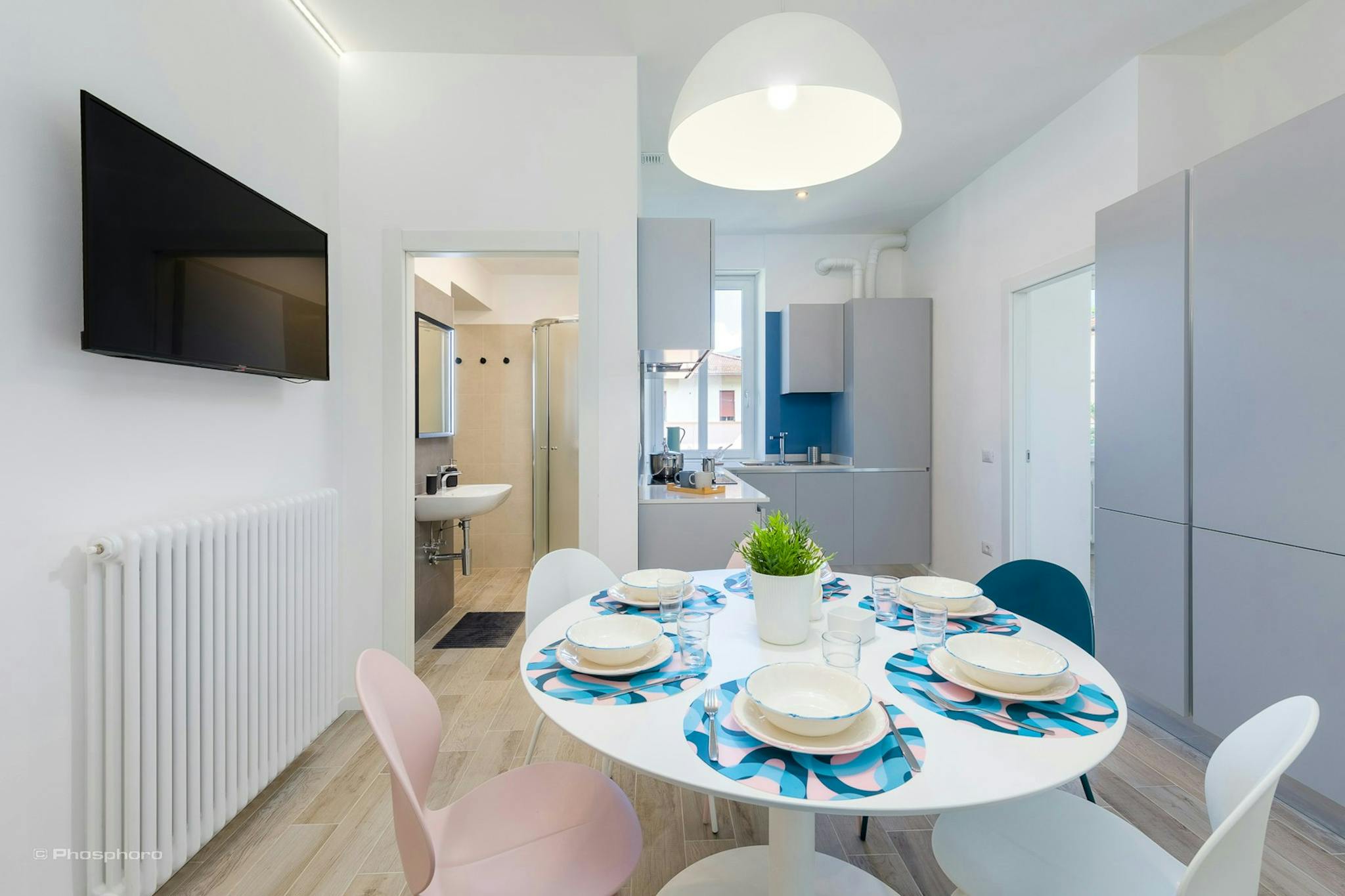 Bed place in a double room in a modern, comfortable, colorful and full of design house, with a big kitchen, with oven, microwave, dishwasher, washing machine, a large living room with sofa bed, smart tv led. 2 bathrooms, with jacuzzi shower with r...