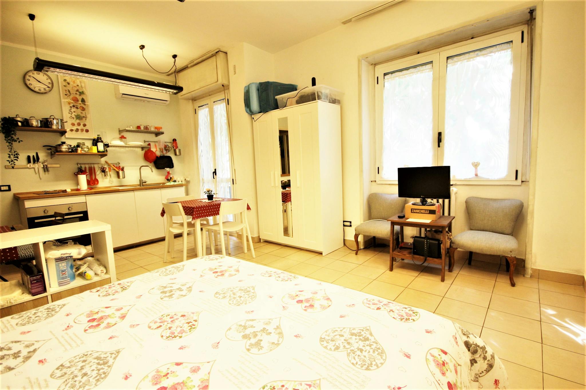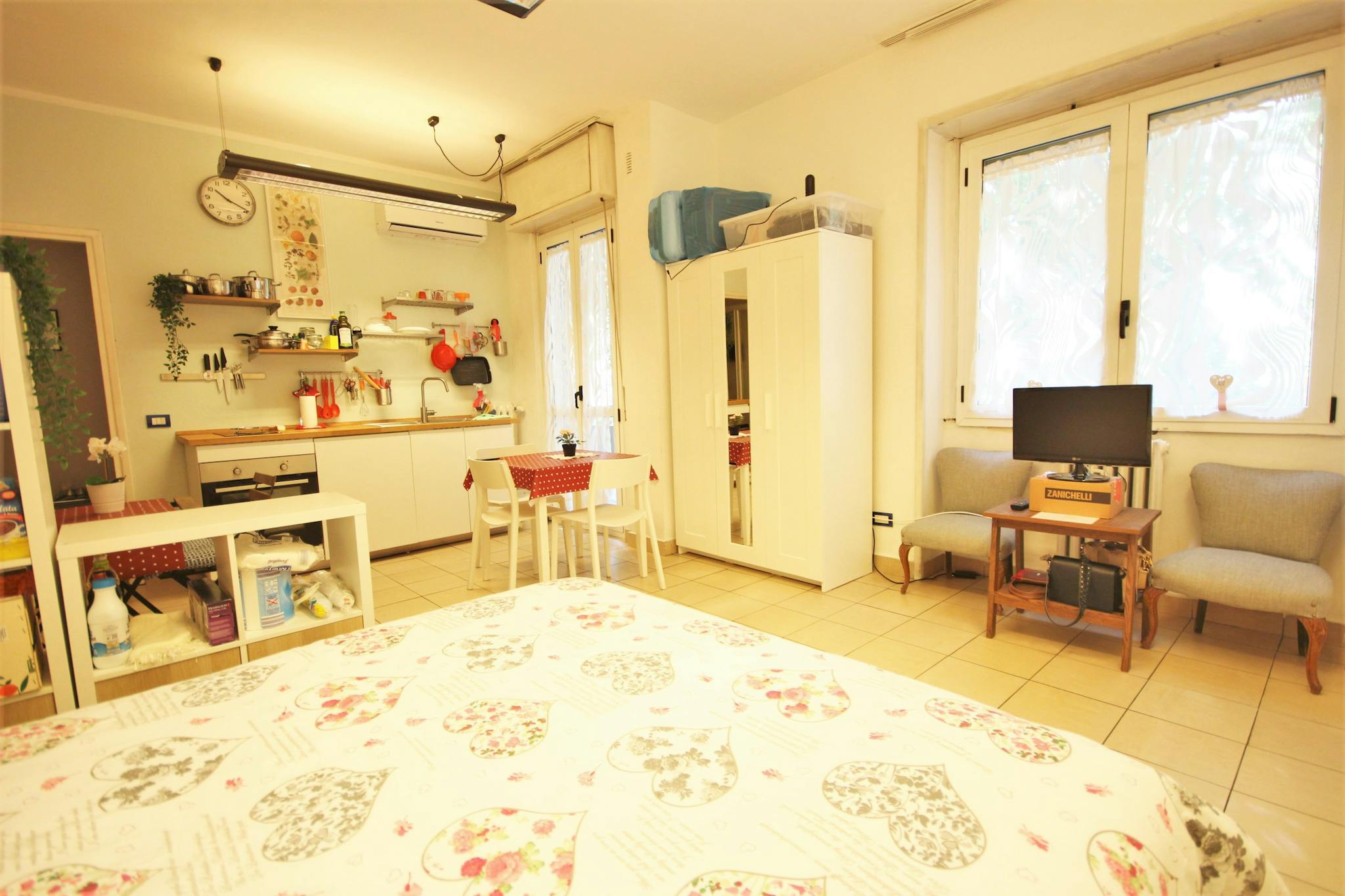Grazioso monolocale situato al 1° piano di un edificio in zona San Siro L’alloggio può ospitare 2 posti letto, ed è composto da un’unica zona con un’ampia cucina attrezzata con un tavolo per pranzare e un tavolino a parte e un letto matrim...