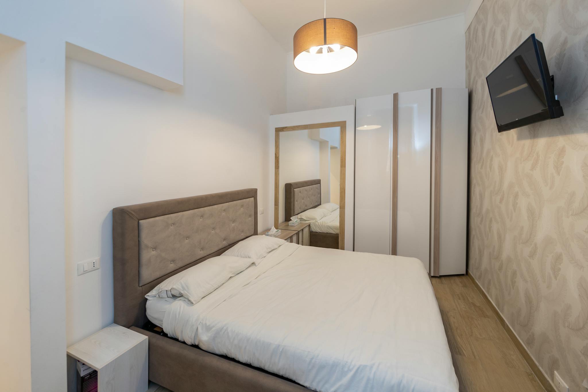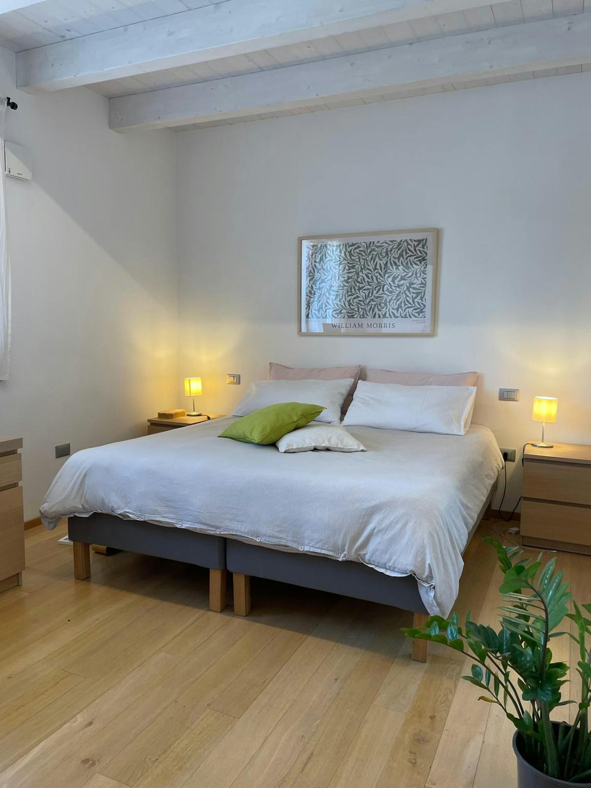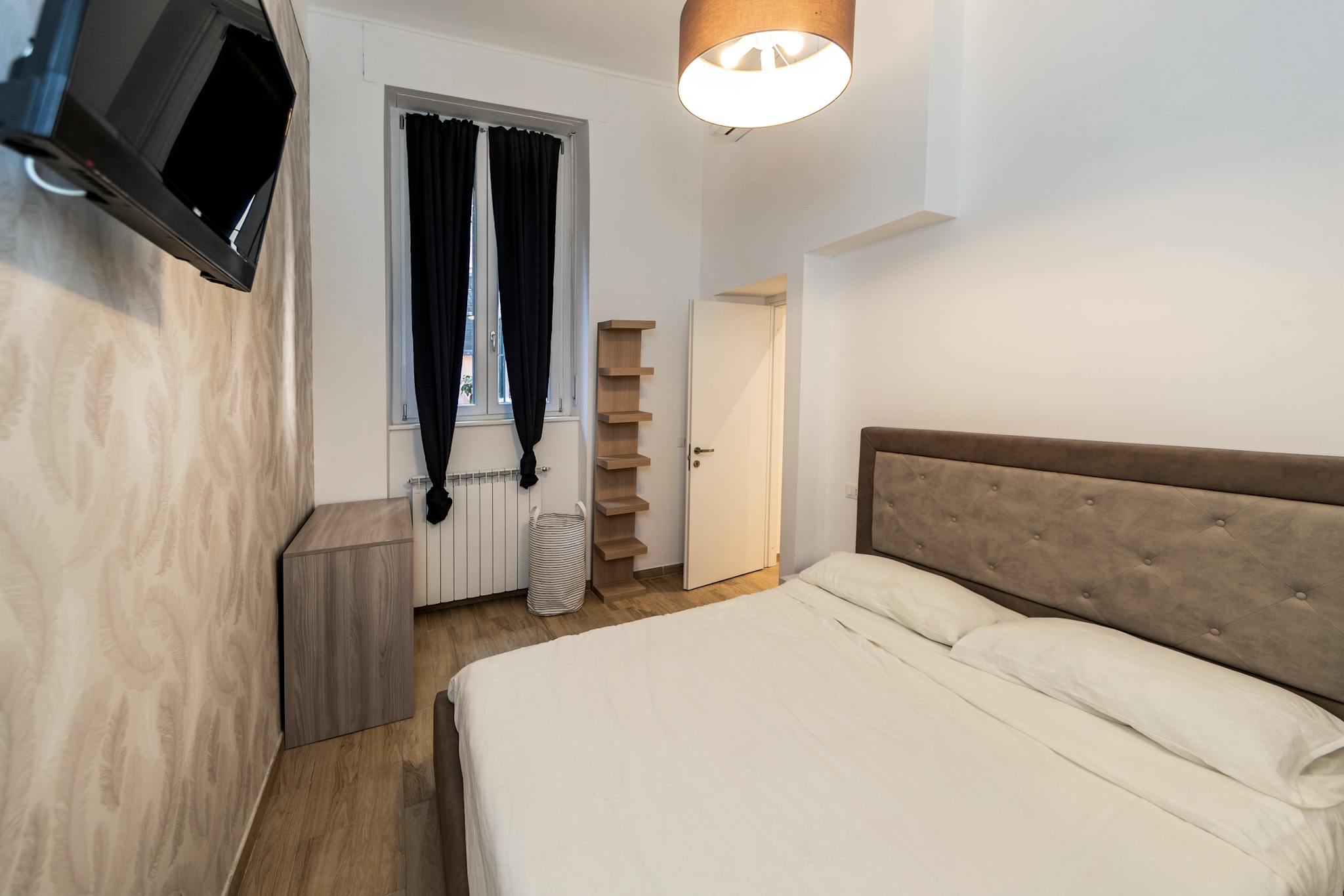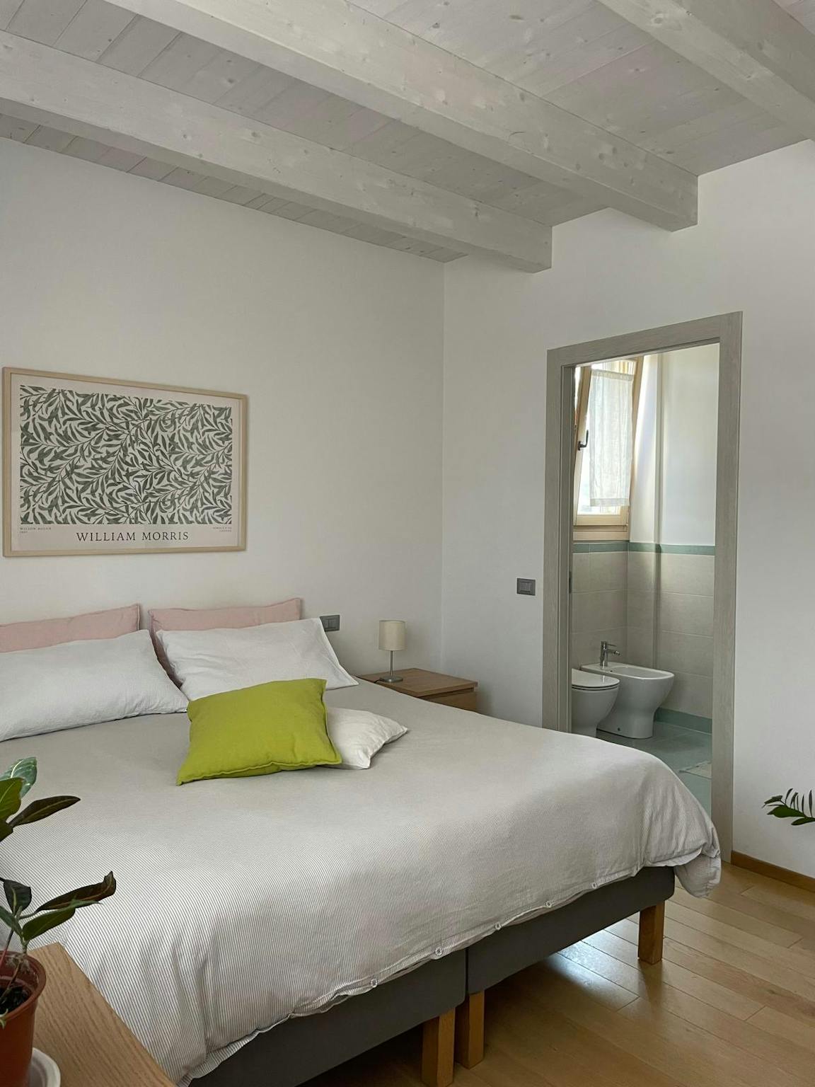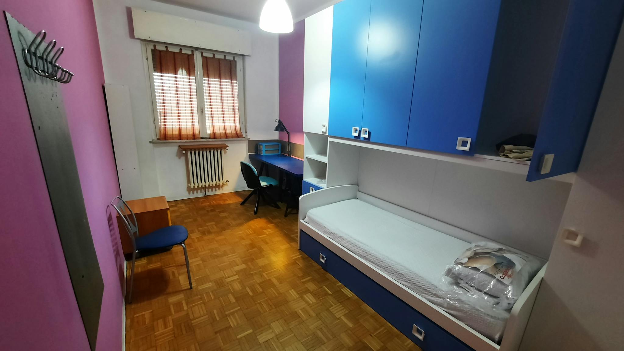 A big room with king-sized bed, a large desk and wardrobe. The bathroom is private with the access directly inside the room. About the house it's the head portion of a terraced house completed in june 2021 (energy class A3) with garden on 3 sides...
