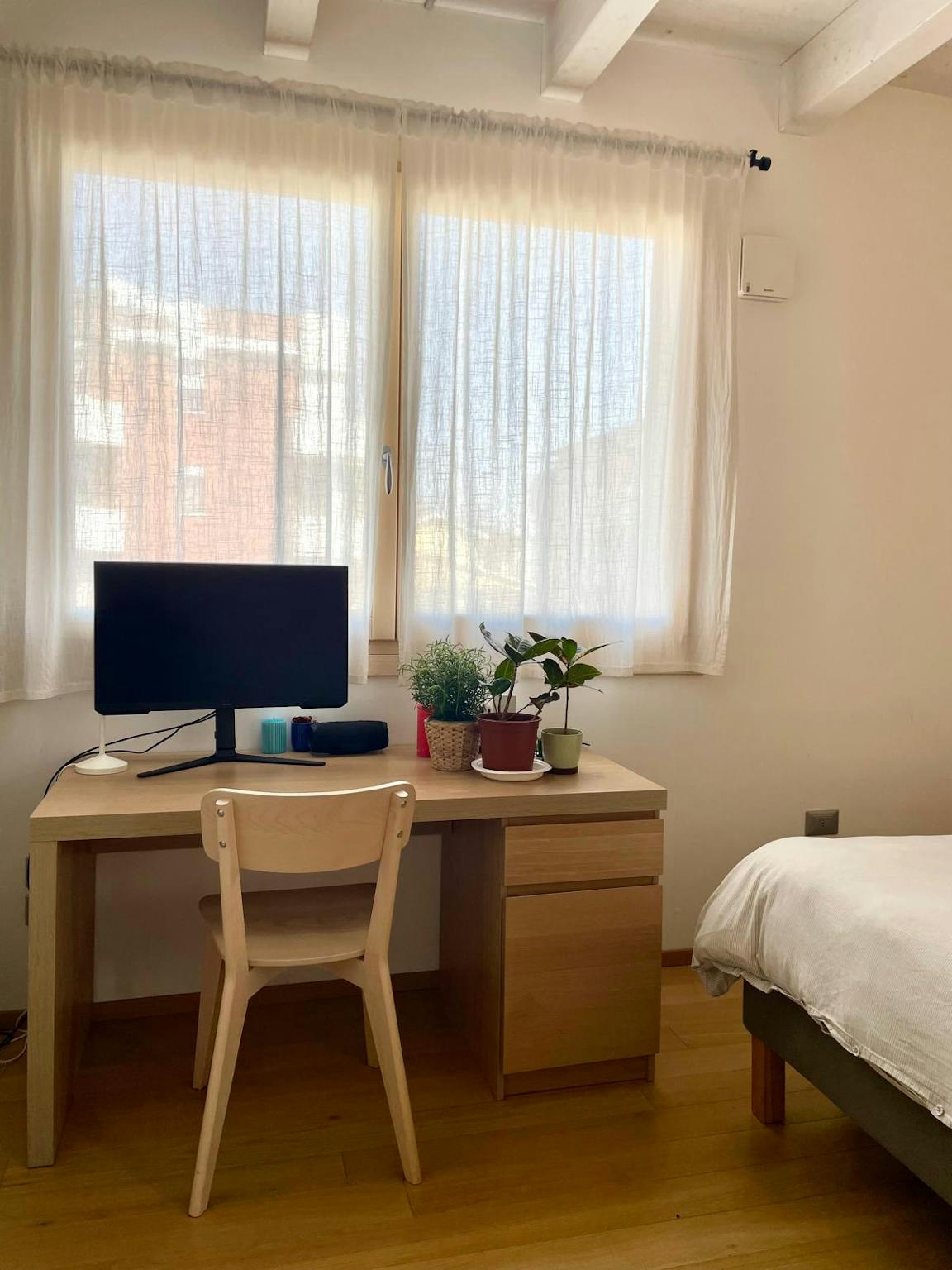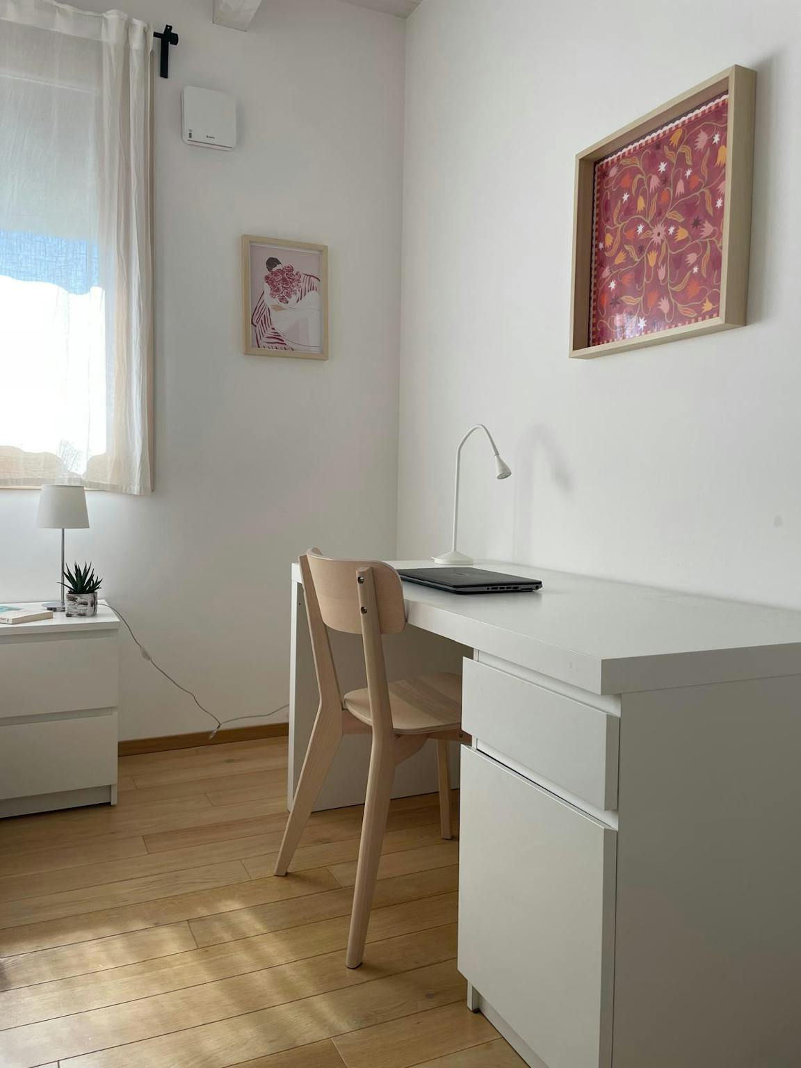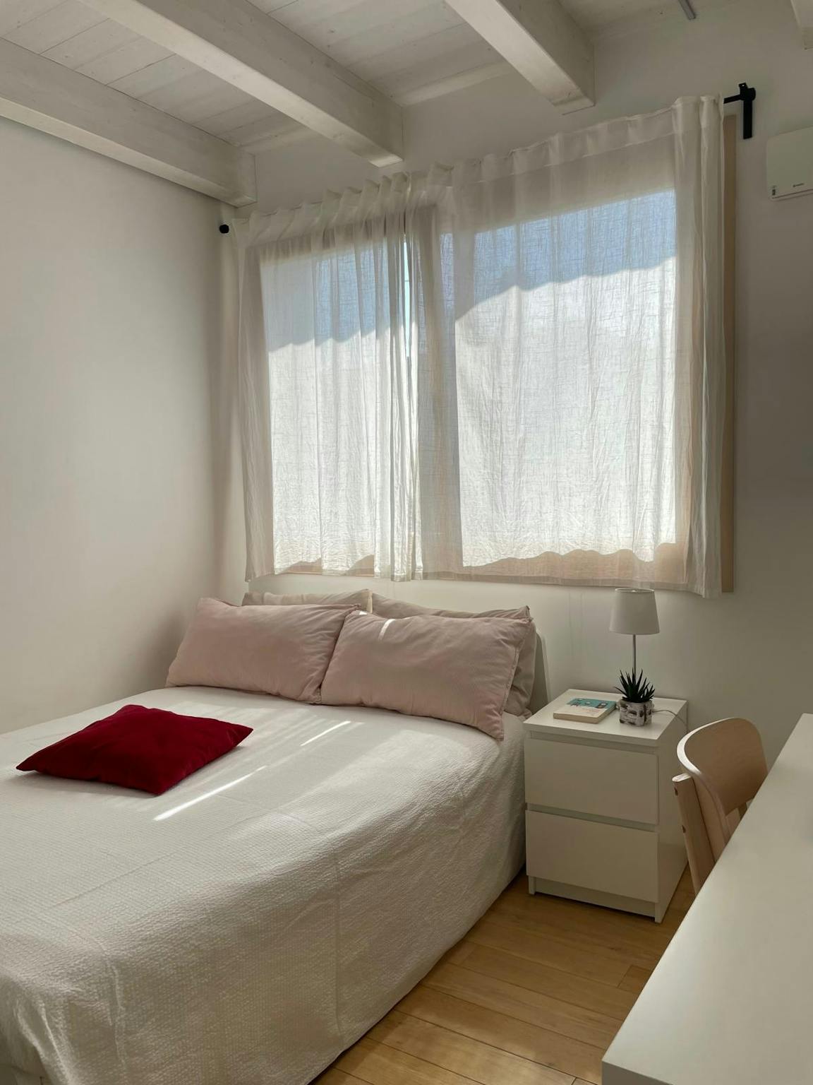 A big room with queen-sized bed, a large desk and wardrobe. The bathroom is shared with another housemate. About the house it's the head portion of a terraced house completed in june 2021 (energy class A3) with garden on 3 sides and porch. Large ...