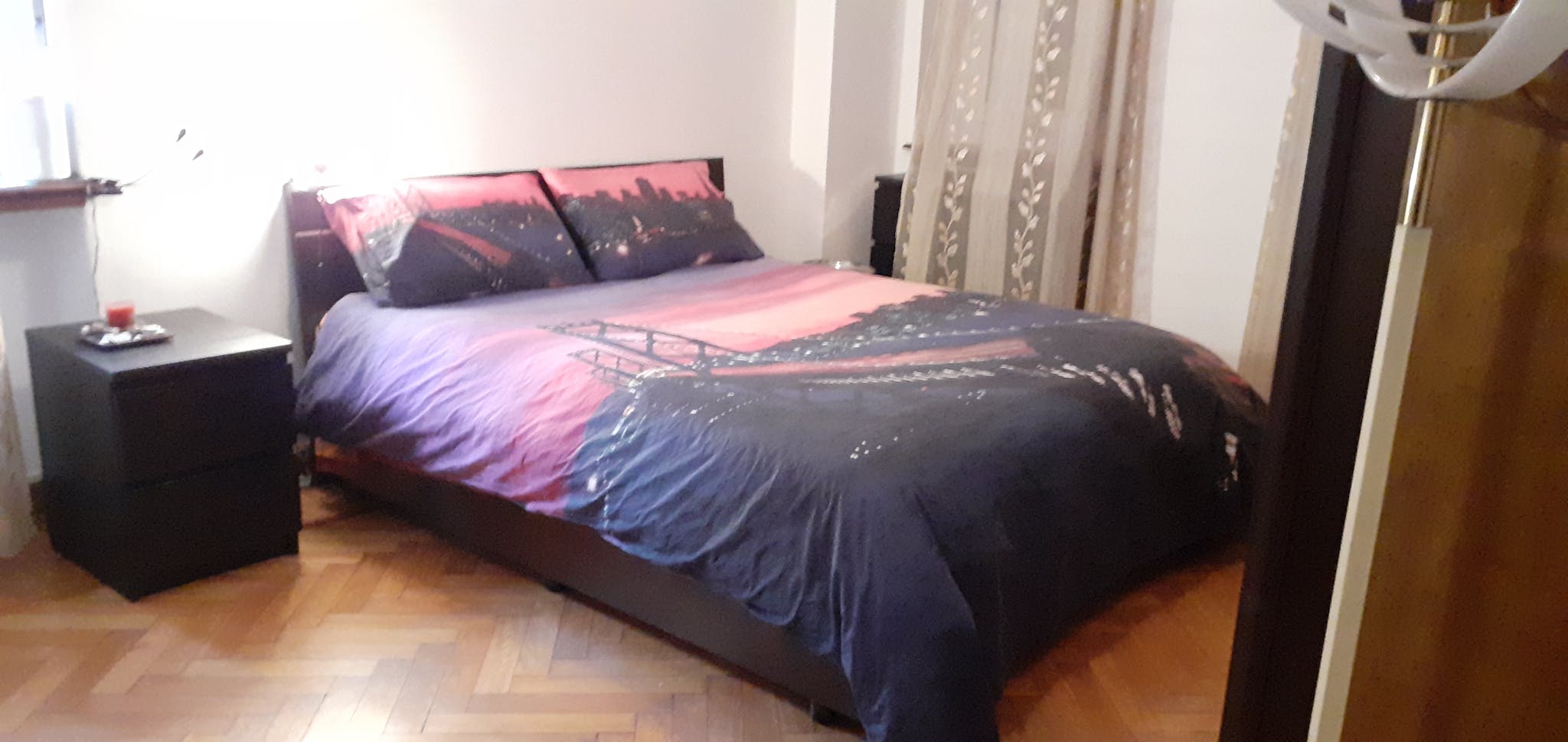 Spacious furnished room with a private balcony. Air conditioner, queen bed, desk, wardrobes and drawers. Sharing with a professional working male. The apartment is located on the top floor with a daily porter. Located 3/4 min walk to Metro Ud...