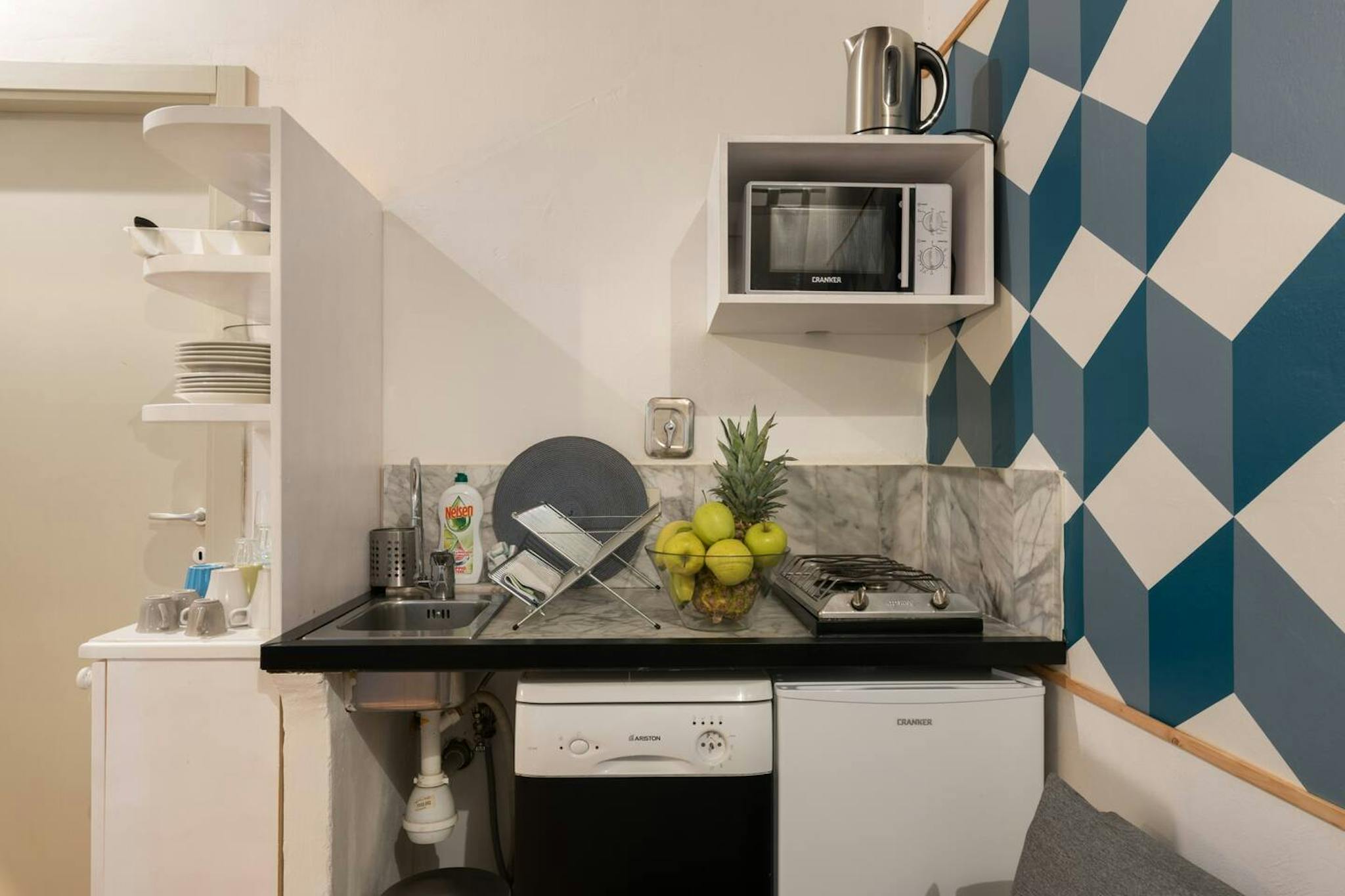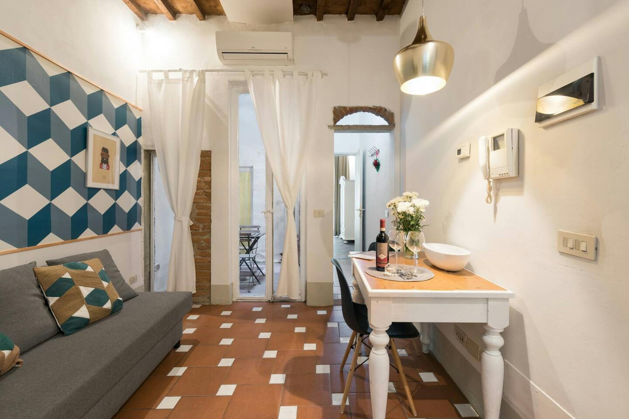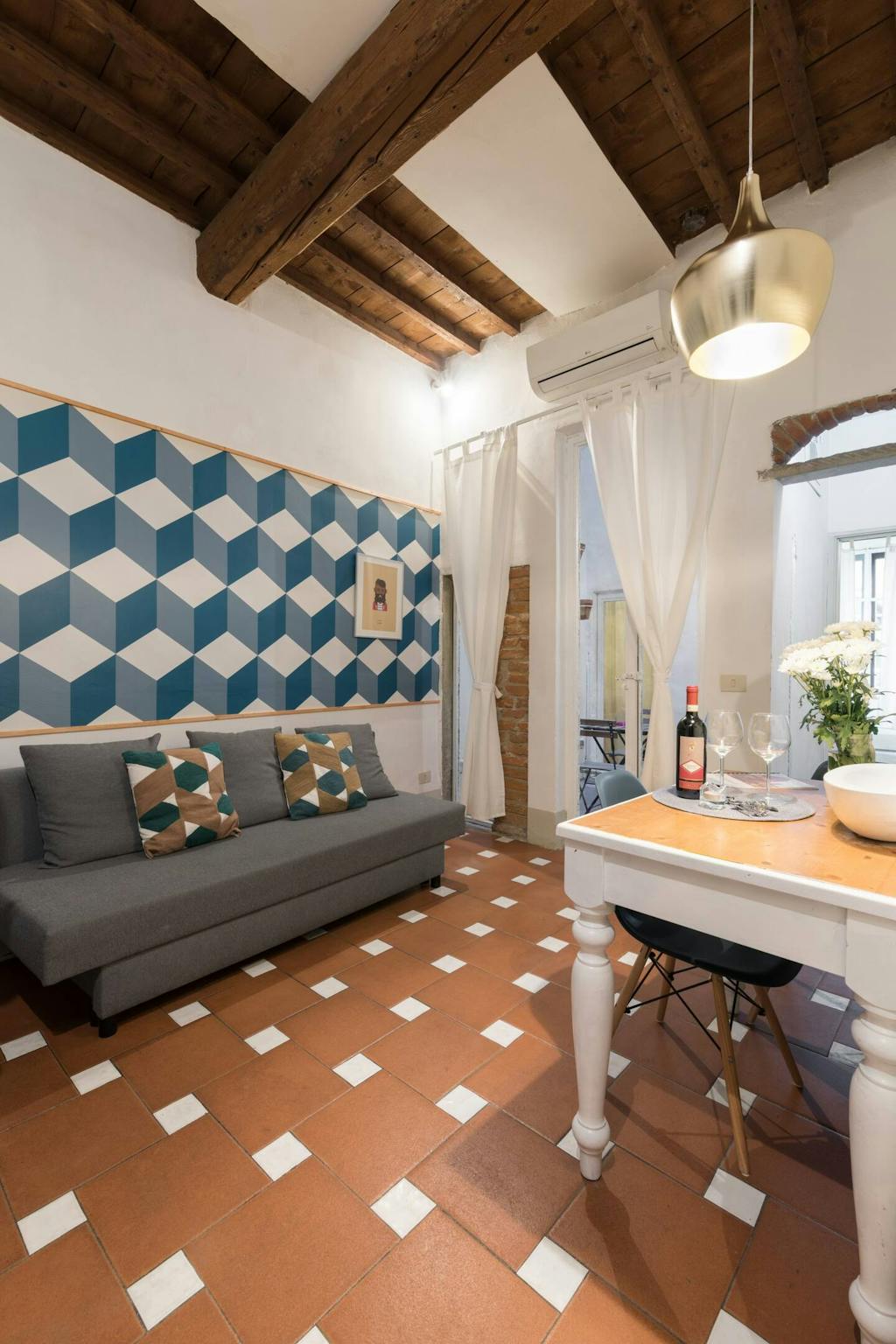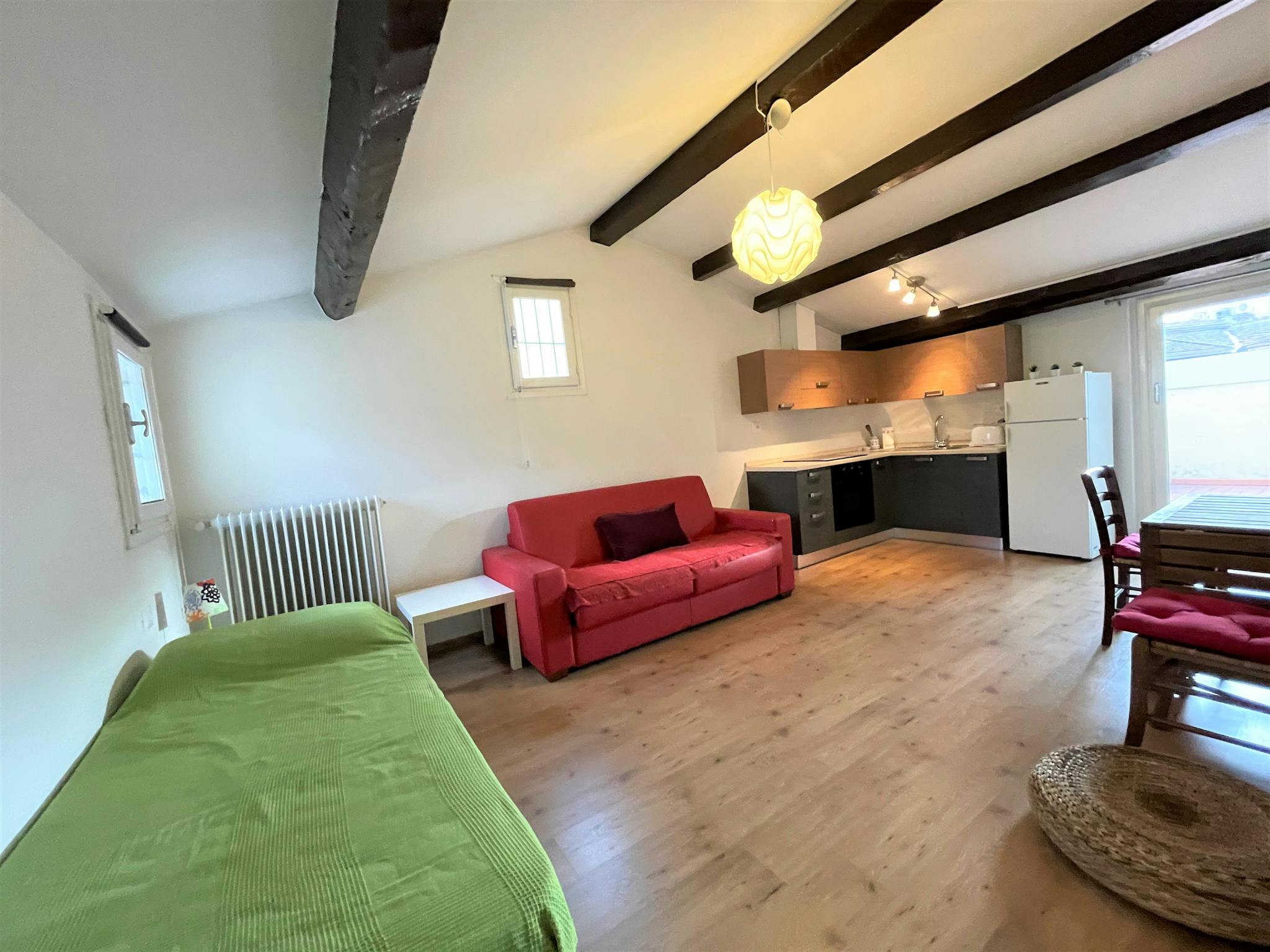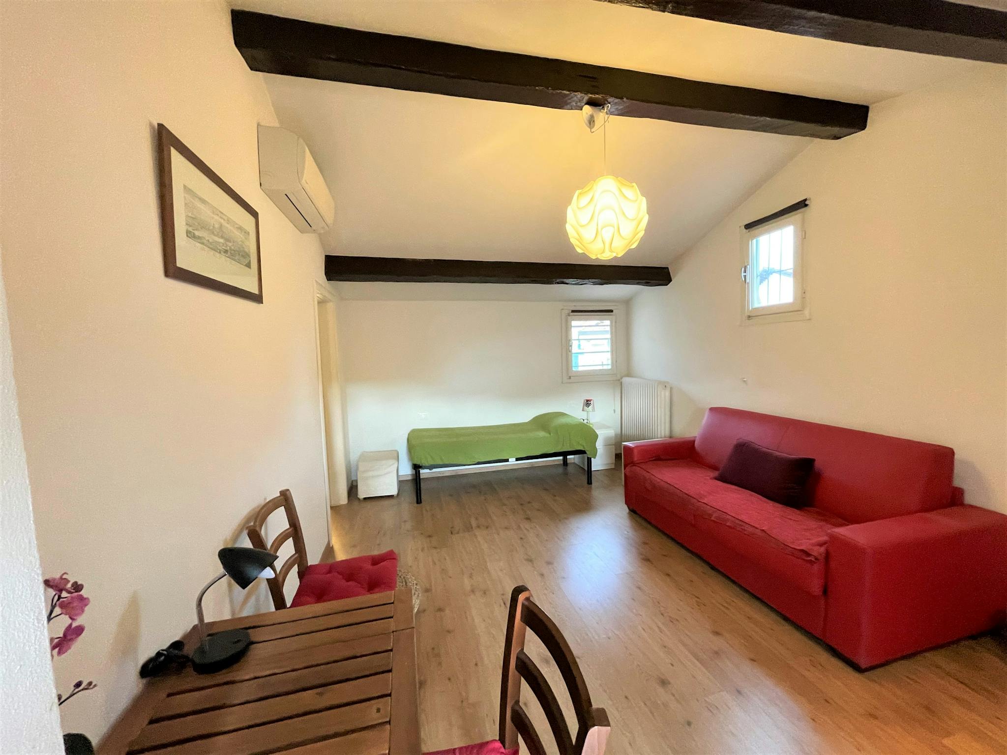 Spacious, bright and comfortable single-room apartment, composed of a single bed, a sofa, table with chairs, a small walk-in closet. The Apartment is situated at the second floor, it has a private bathroom with a shower, a totally equipped kitche...