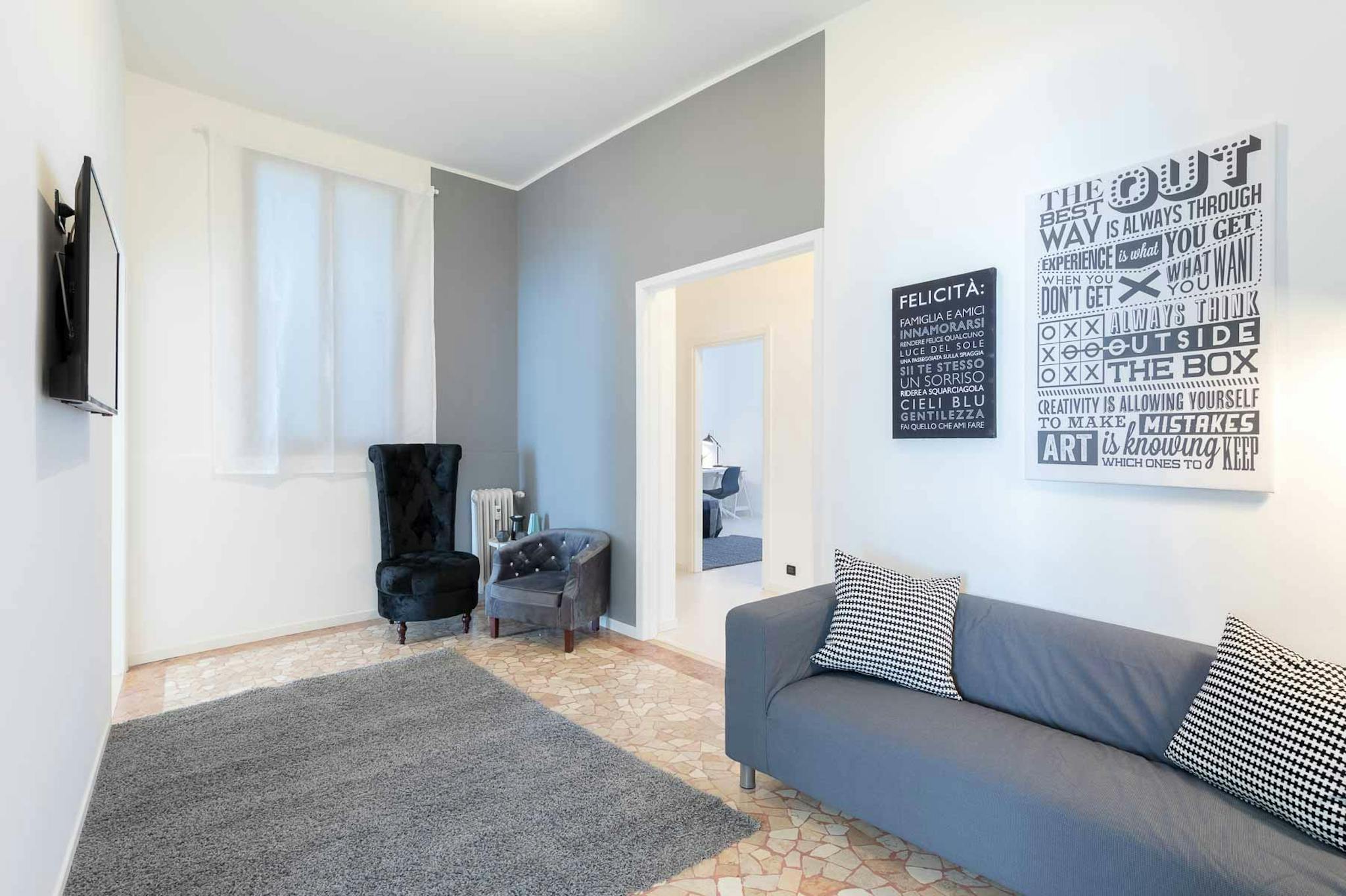 Good morning! Fantastic bright suite close to the Campus Enaudi and in the nice Vanchiglia area close to the city center. Thre is a bus stop by walking distance ot rach the city cneter (10mins) or you can bike (10min). You can use a bike parking. ...