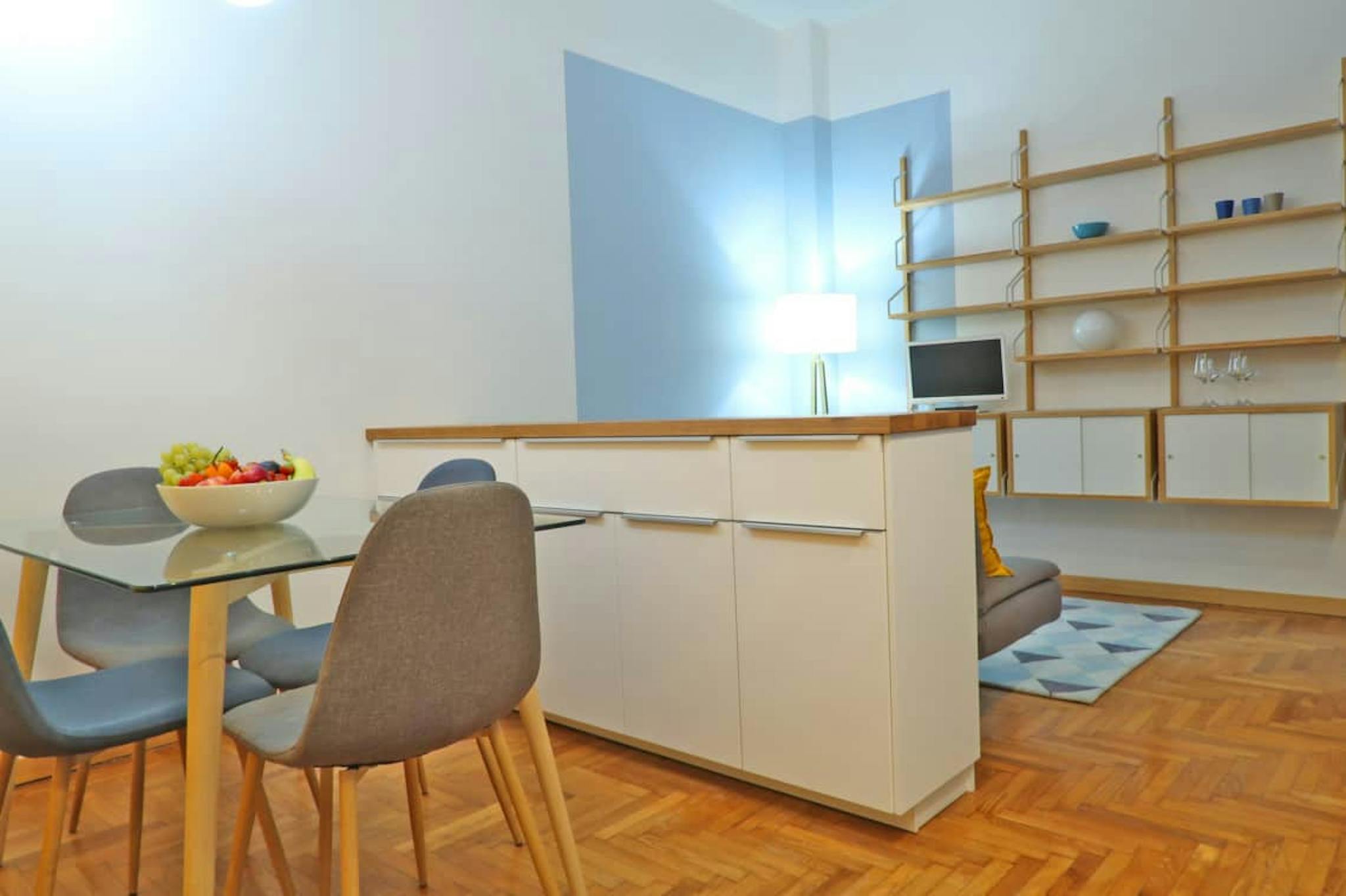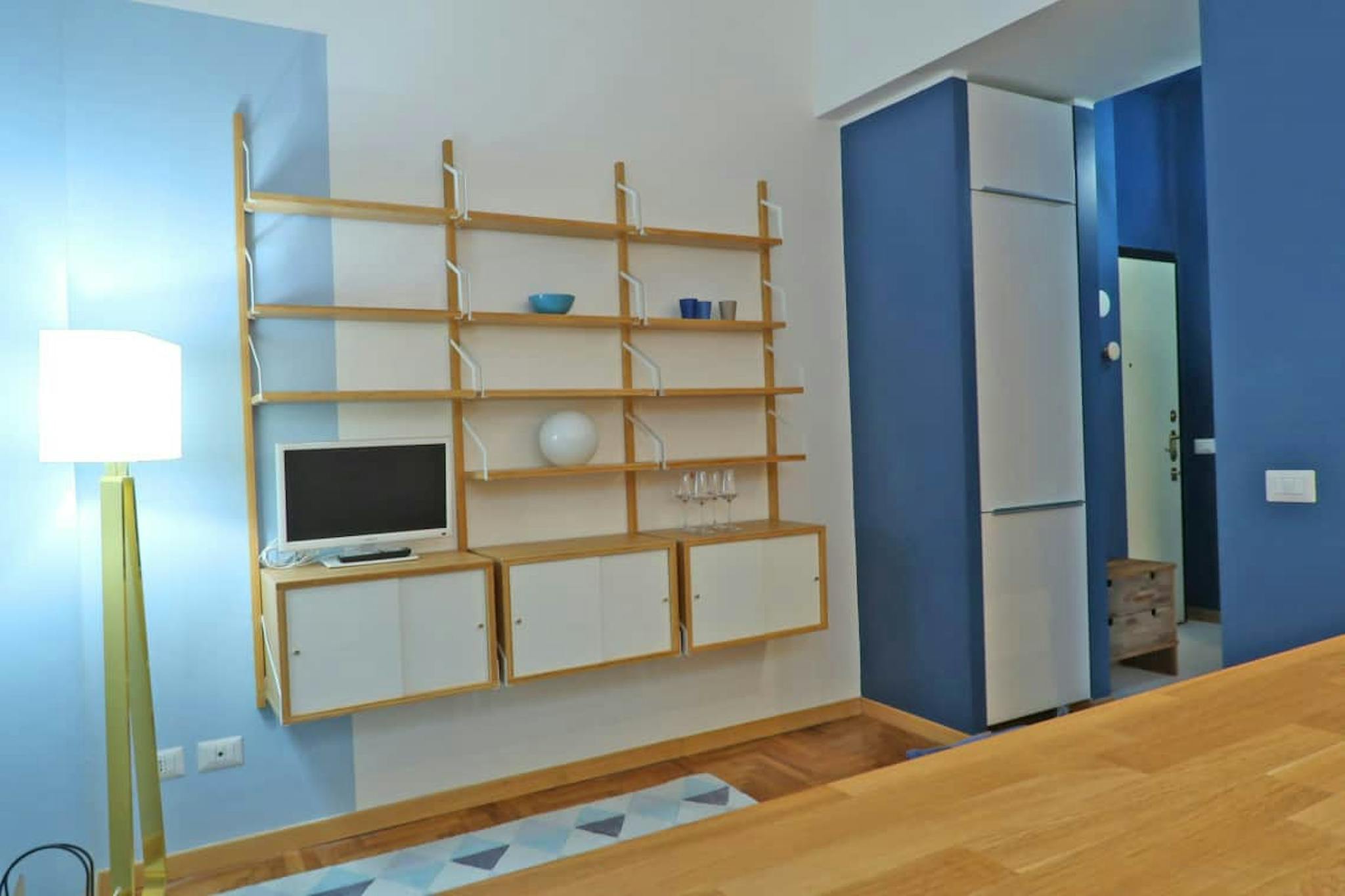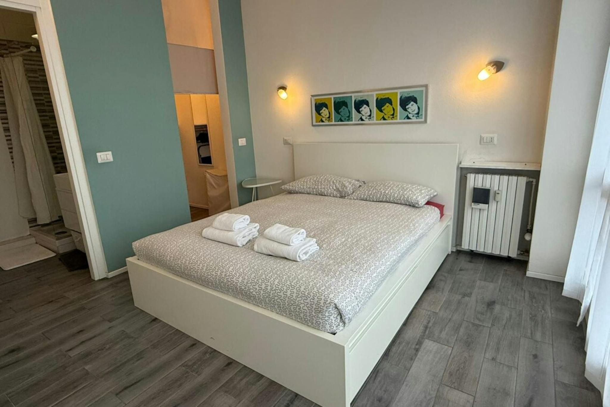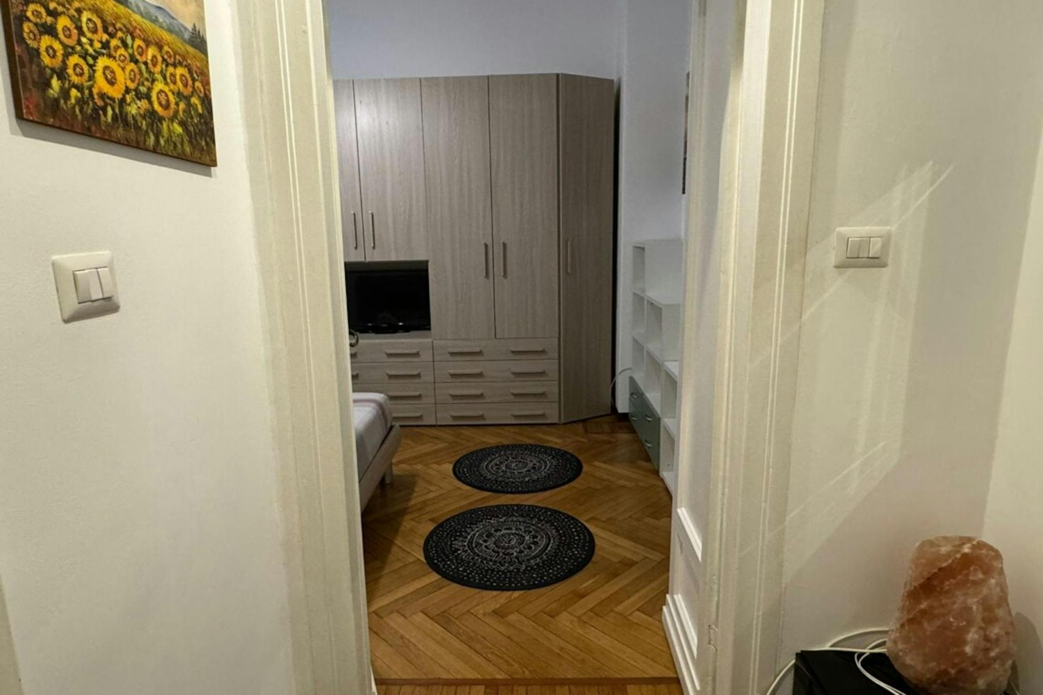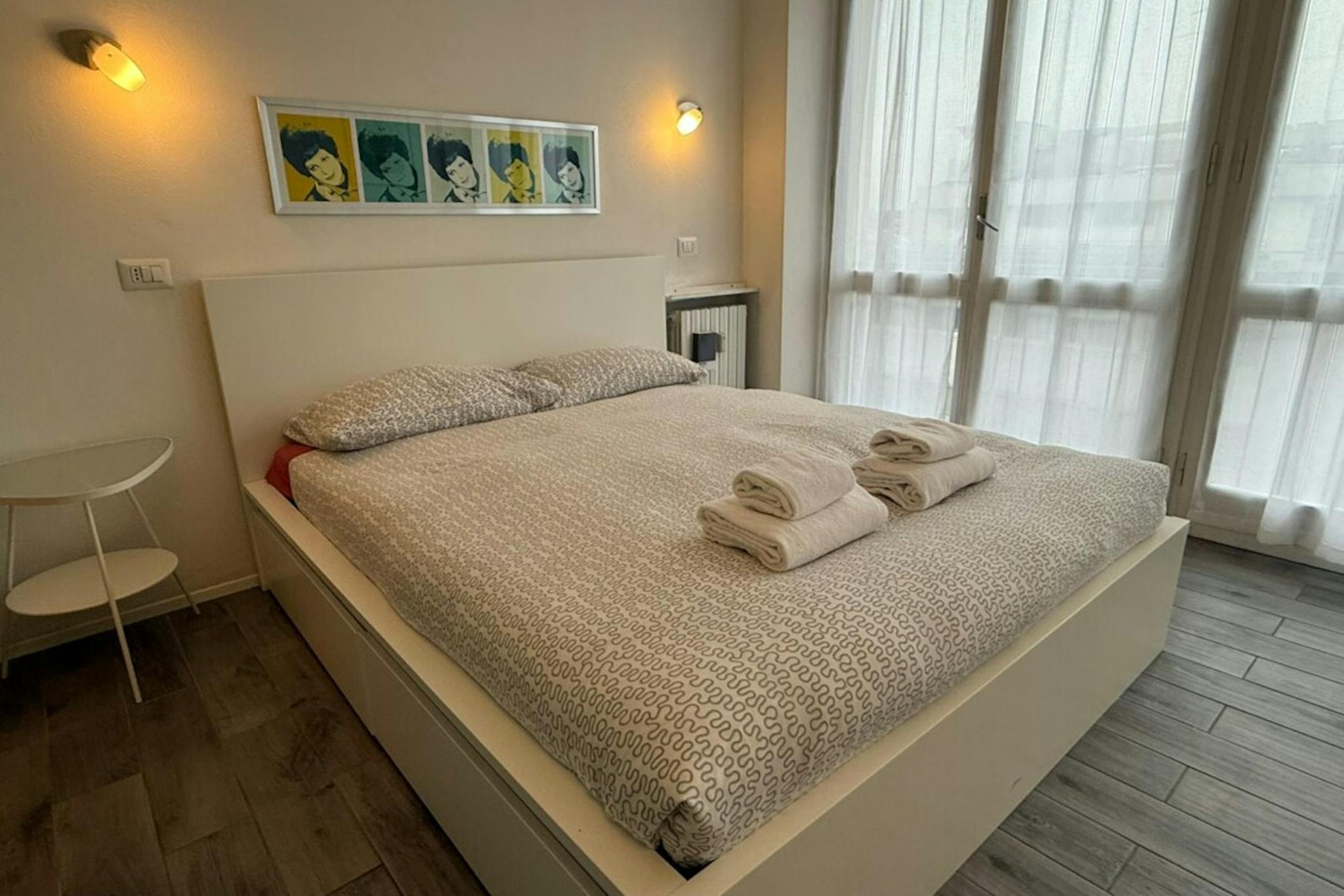 Apartment Description Two-bedroom apartment in Milan, recently renovated and fully furnished with modern furniture and wooden flooring. The apartment opens onto an entrance hall. On the right, there is a spacious bedroom furnished with a single b...