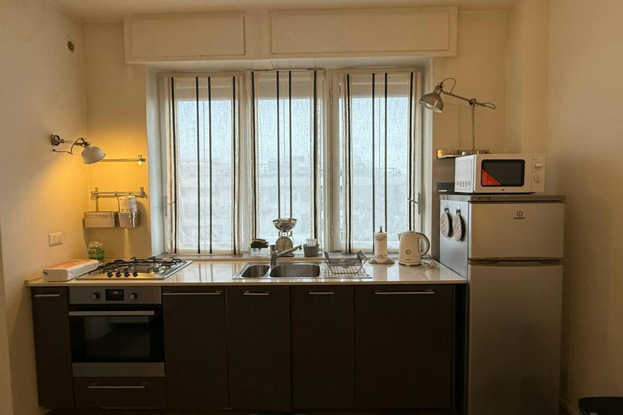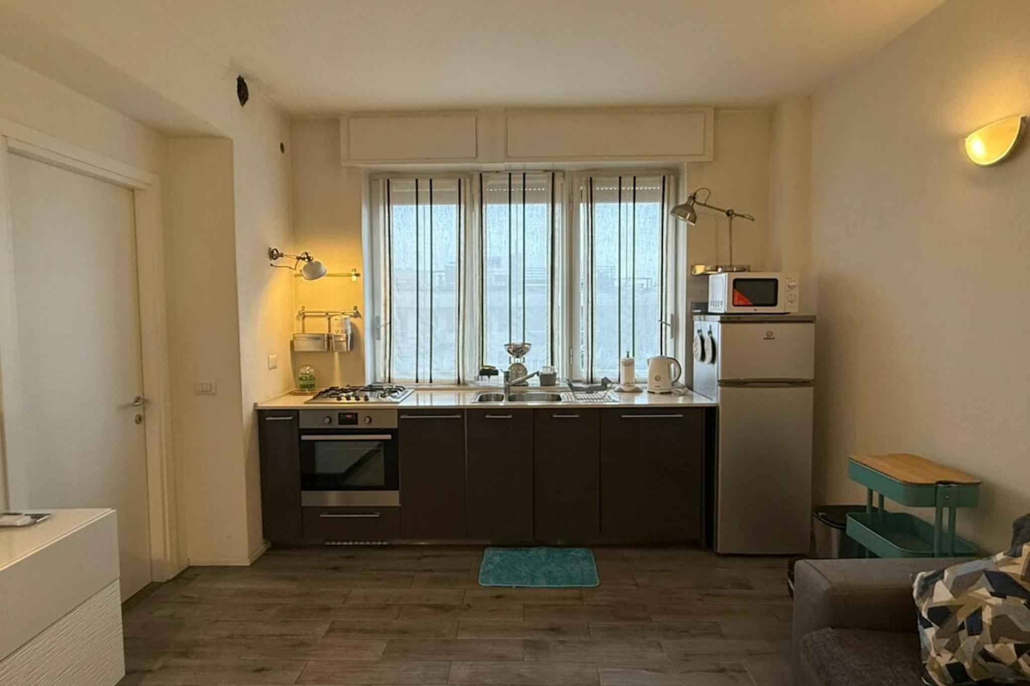 Apartment Description Extremely bright, recently renovated and quiet. On the 5th floor with elevator of a building with doorman service. Very modern and comfortable Apartment Milan with 1 bedroom. Bright living room with a sofa double bed and a f...