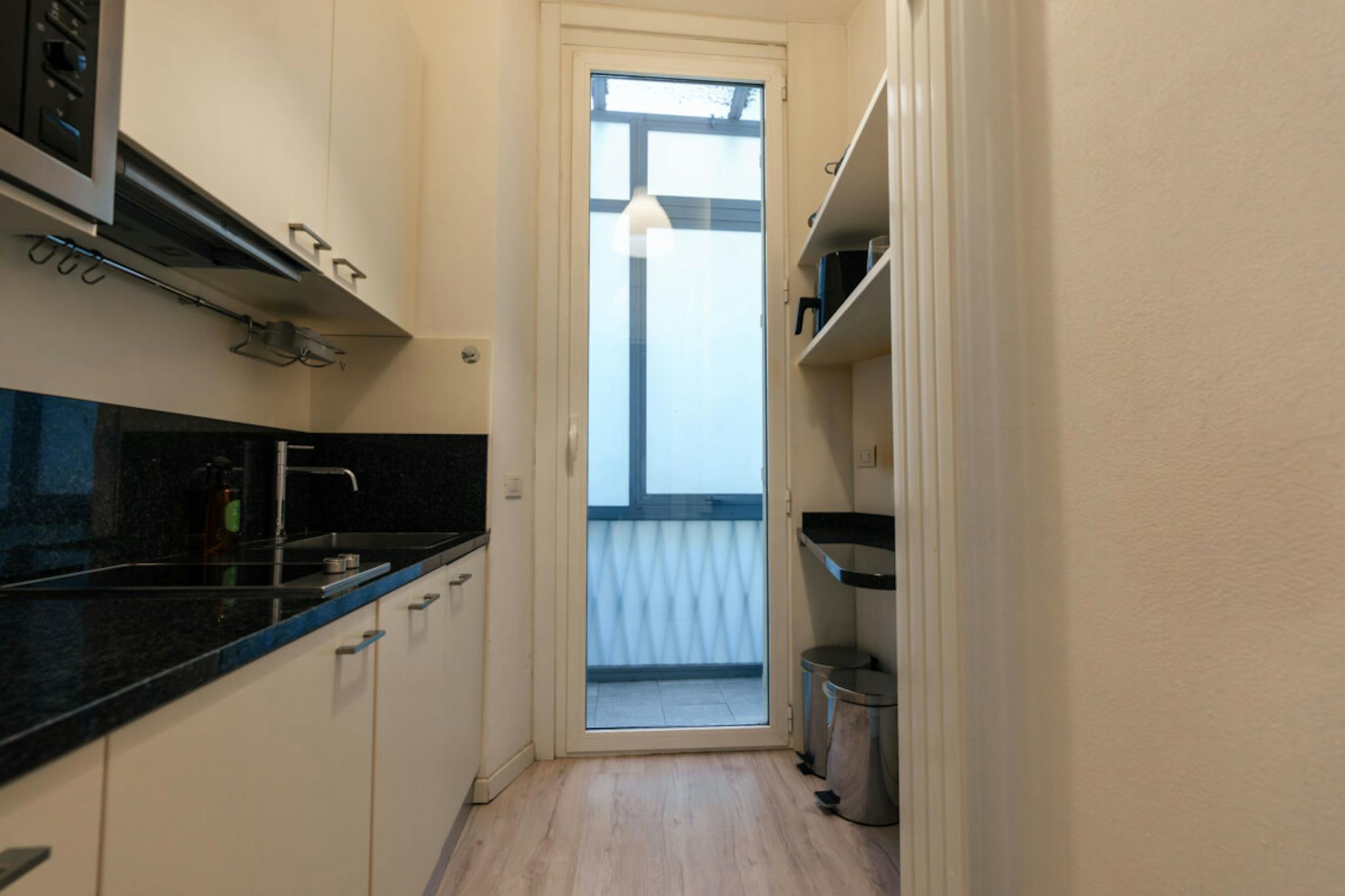 Apartment Description Recently renovated modern studio apartment, quiet and bright, on the mezzanine floor, facing the quiet inner courtyard of a nice Art Nouveau building. Modern white fully equipped kitchen, with dishwasher, microwave, new gas h...