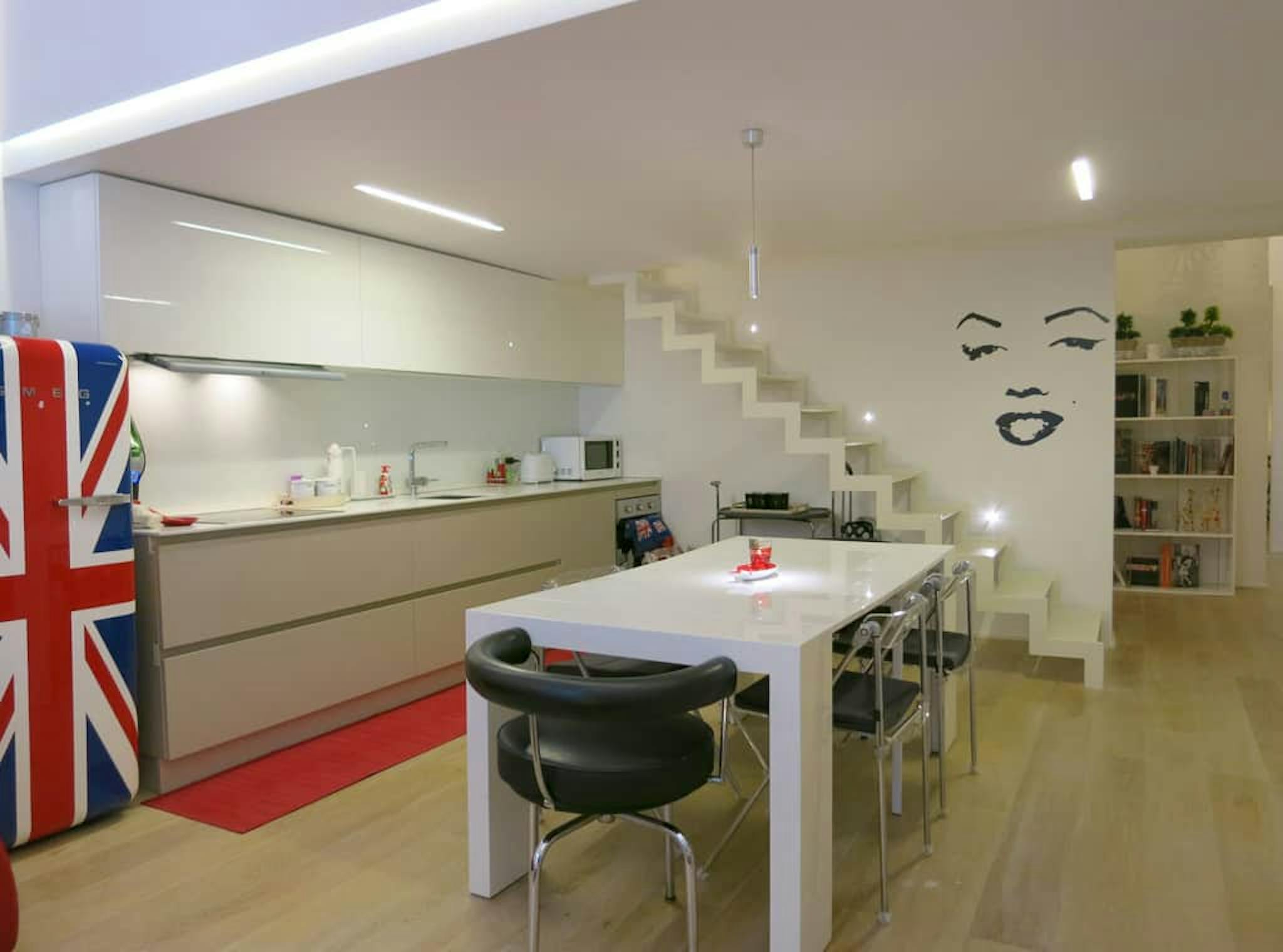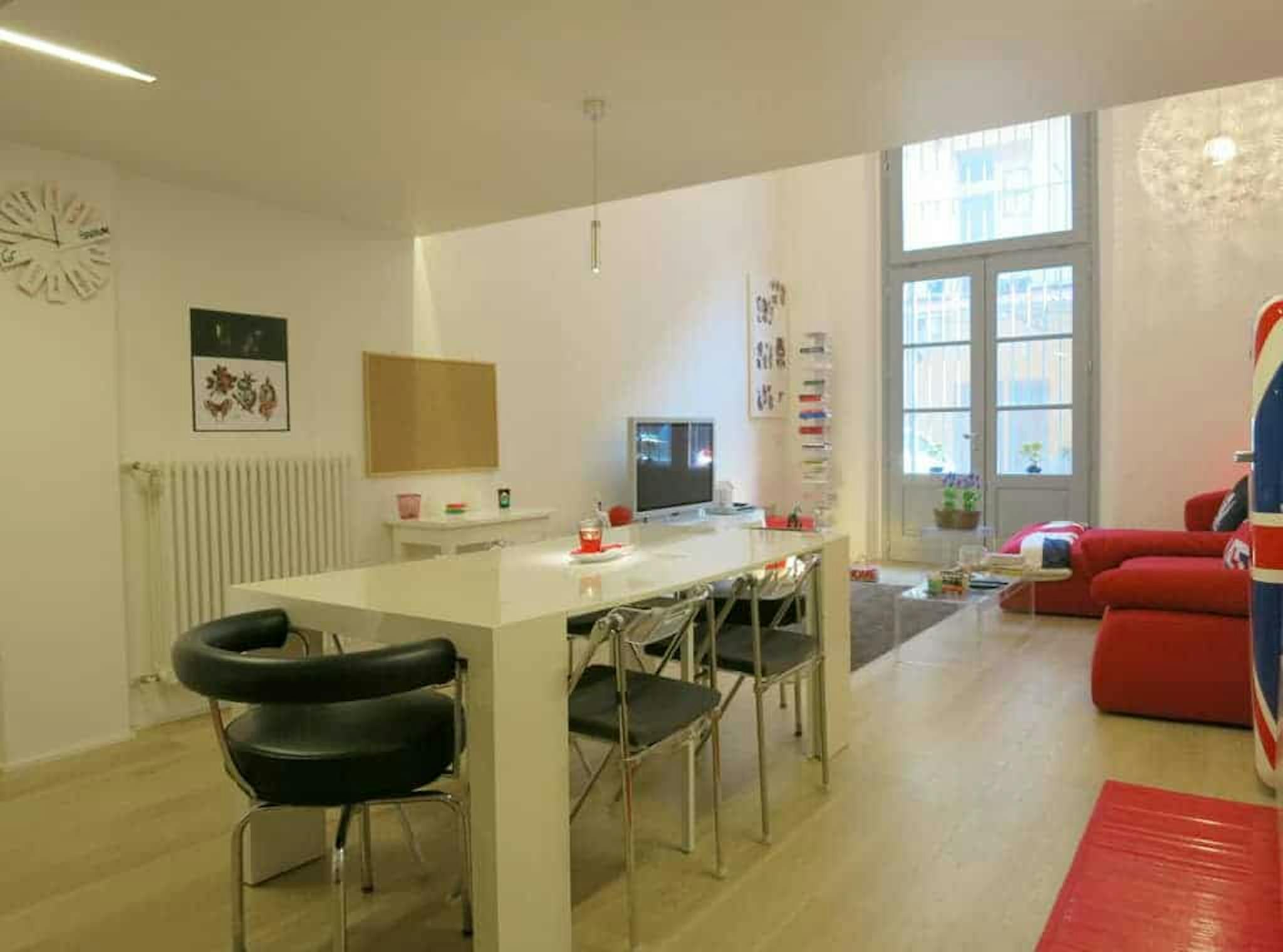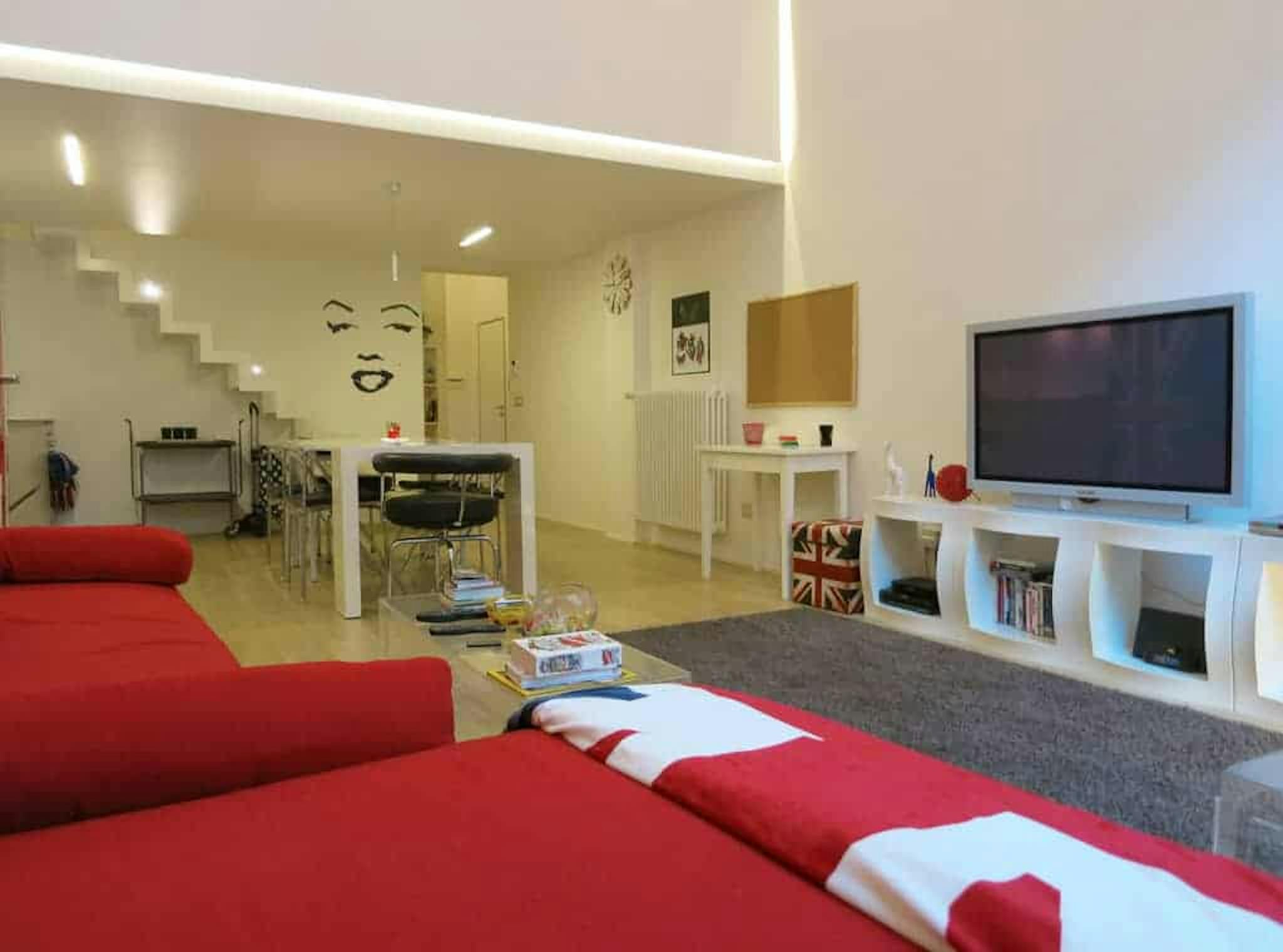 Apartment Description Stunning 2 bedrooms loft apartment Milan with a modern design, totally renovated, with all the comforts. Very quiet and bright, facing the inner courtyard. On the ground floor there is the entrance hall, a walk-in closet, th...