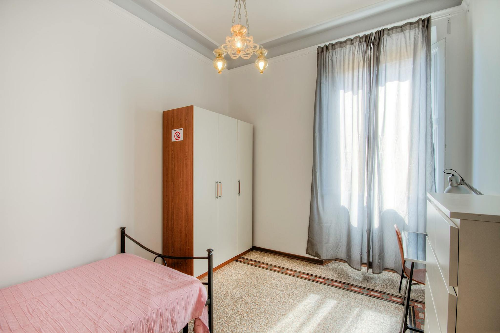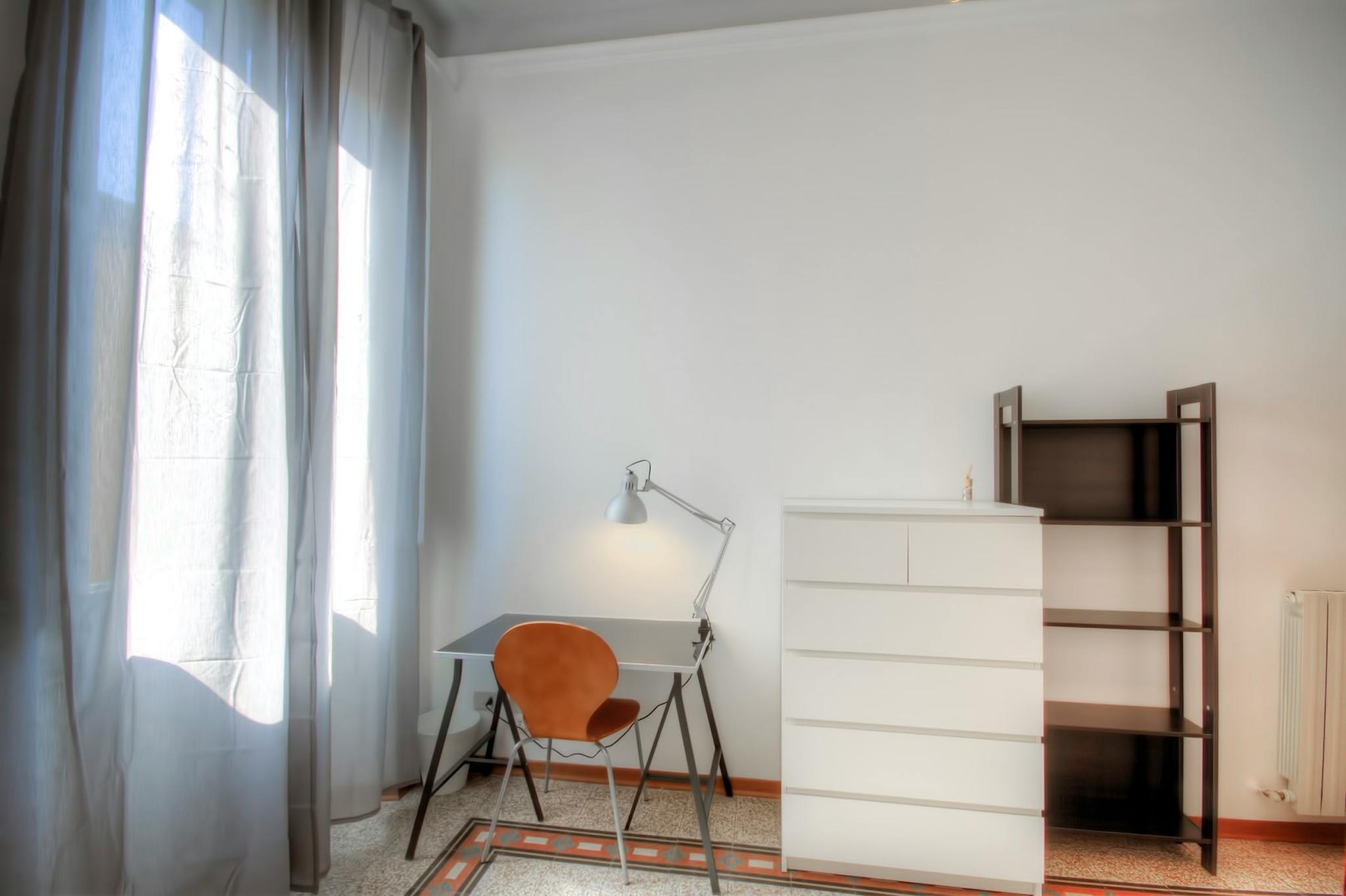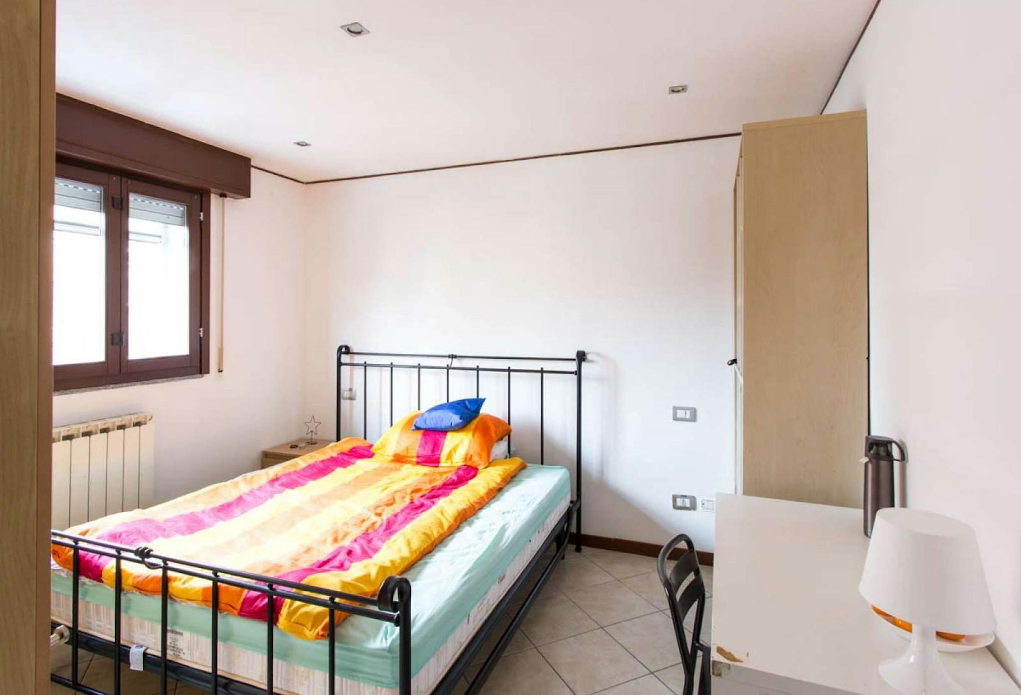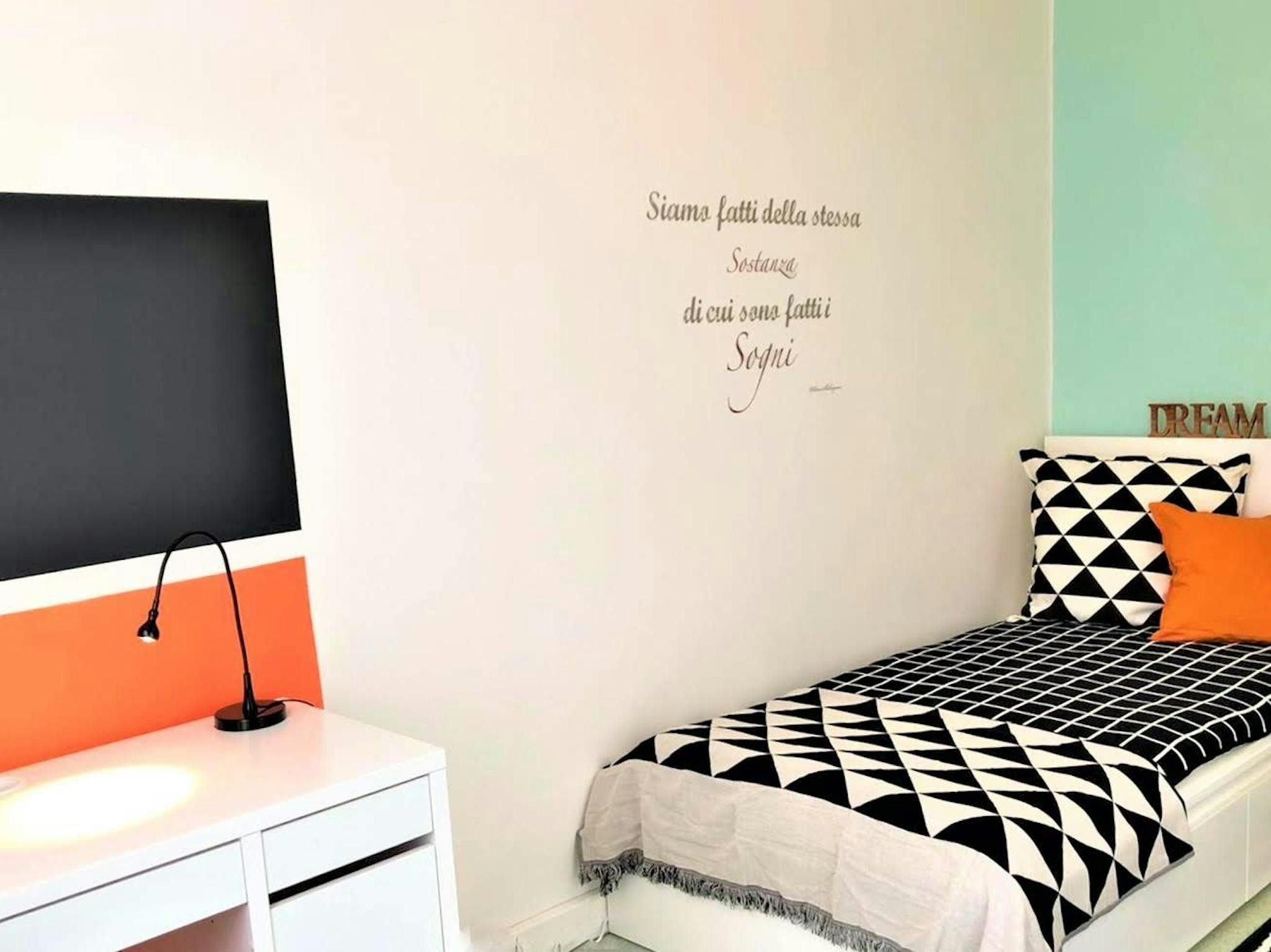 THE ROOM The room is a spacious single room (14 mq - 145 sq.ft.), quiet. Very bright and confortable, is fully furnished with small double bed (120 x 190 cm, 4" x 6.3"), wardrobe, chest of drawers, desk, bookshelf, desklamp, chairs. THE FLAT ...