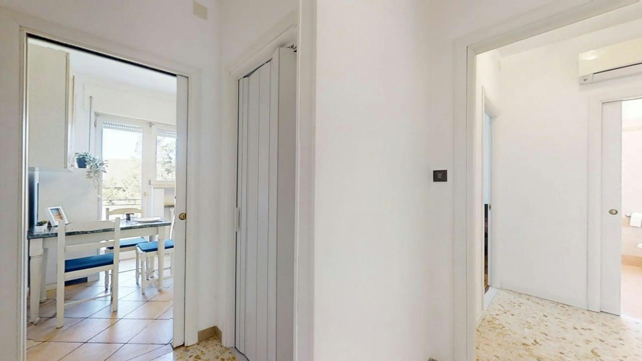 Bright 17 sqm double room with private bathroom, walk-in closet and private terrace, in a newly renovated apartment located in Via Col Beretta 11, Padua. The 87 sqm apartment features a spacious living room, a large fully equipped kitchen, a balc...
