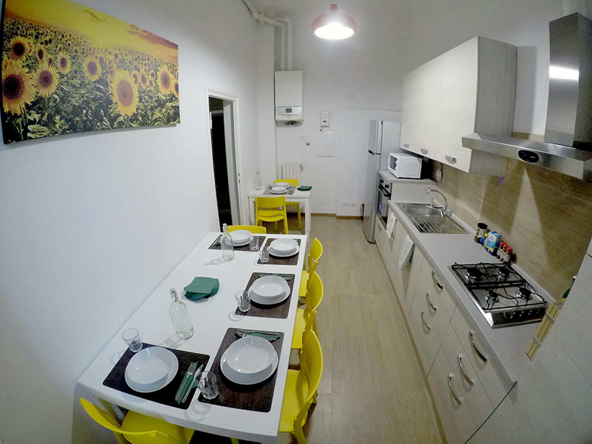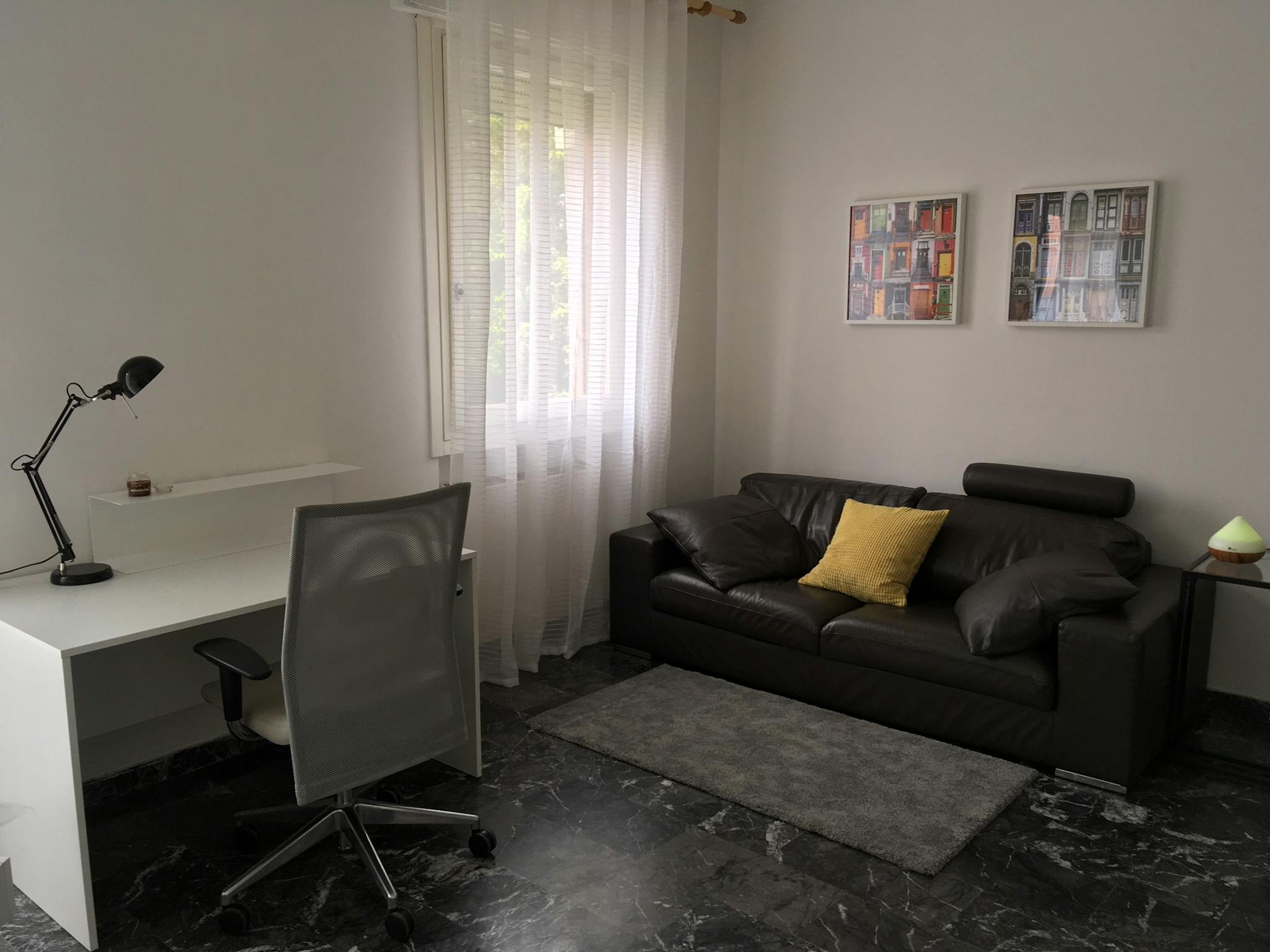 Beautiful single room, very bright and welcoming with little private balcony. The apartment is all new, with 7 bedrooms and 3 bathrooms, fully equipped kitchen, 100 MB Fibra Wi-Fi. Supermarket near the house, bus stops under the house, Tramvia L3...