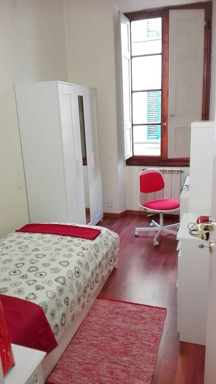 Cozy single room in the real heart of Florence! The apartment is with 4 bedrooms and 2 bathrooms, fully equipped kitchen, 100 MB fast Wi-Fi. Supermarket under the house, bus stops under the house, the historic center is here! , many universities a...