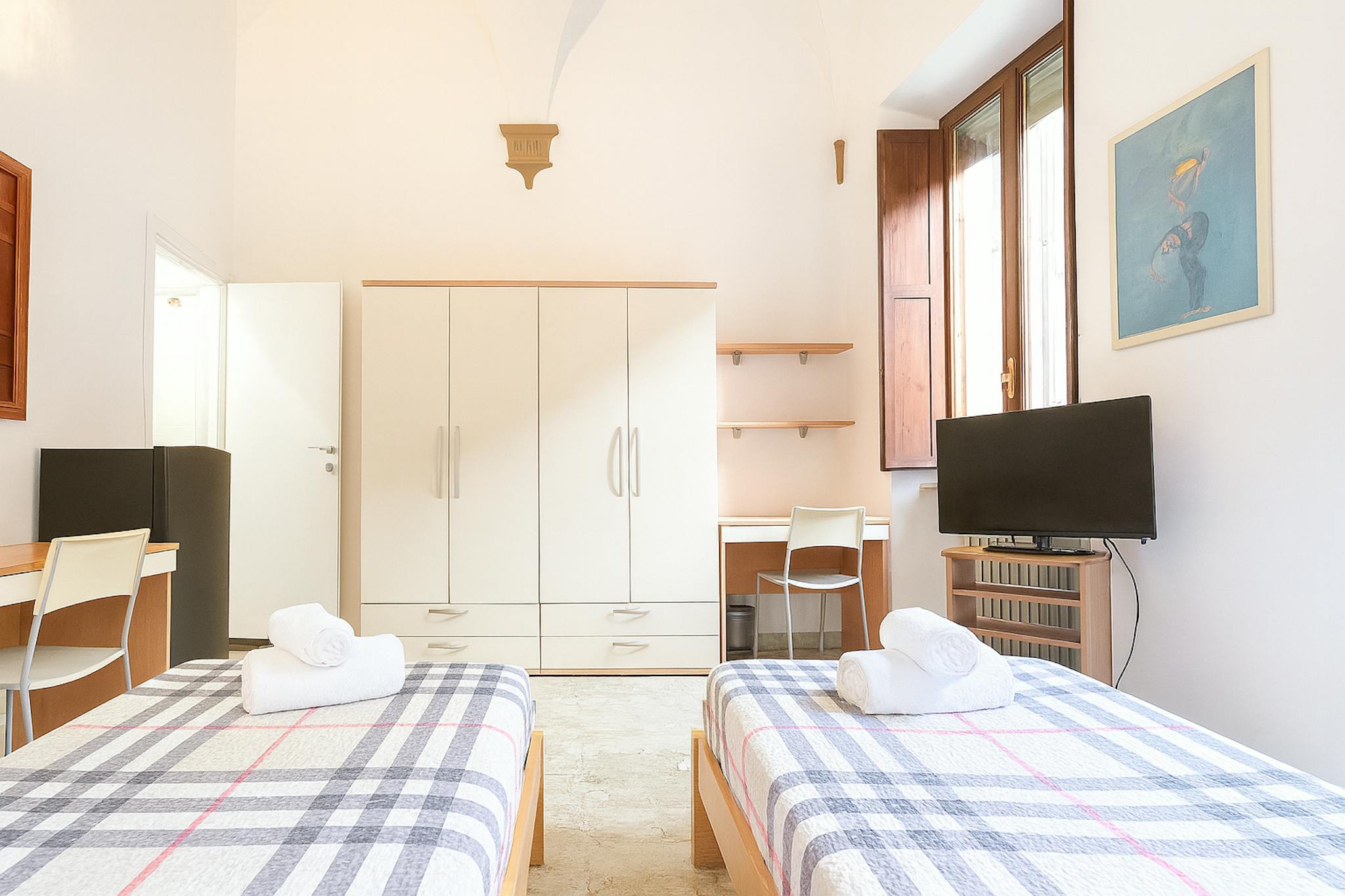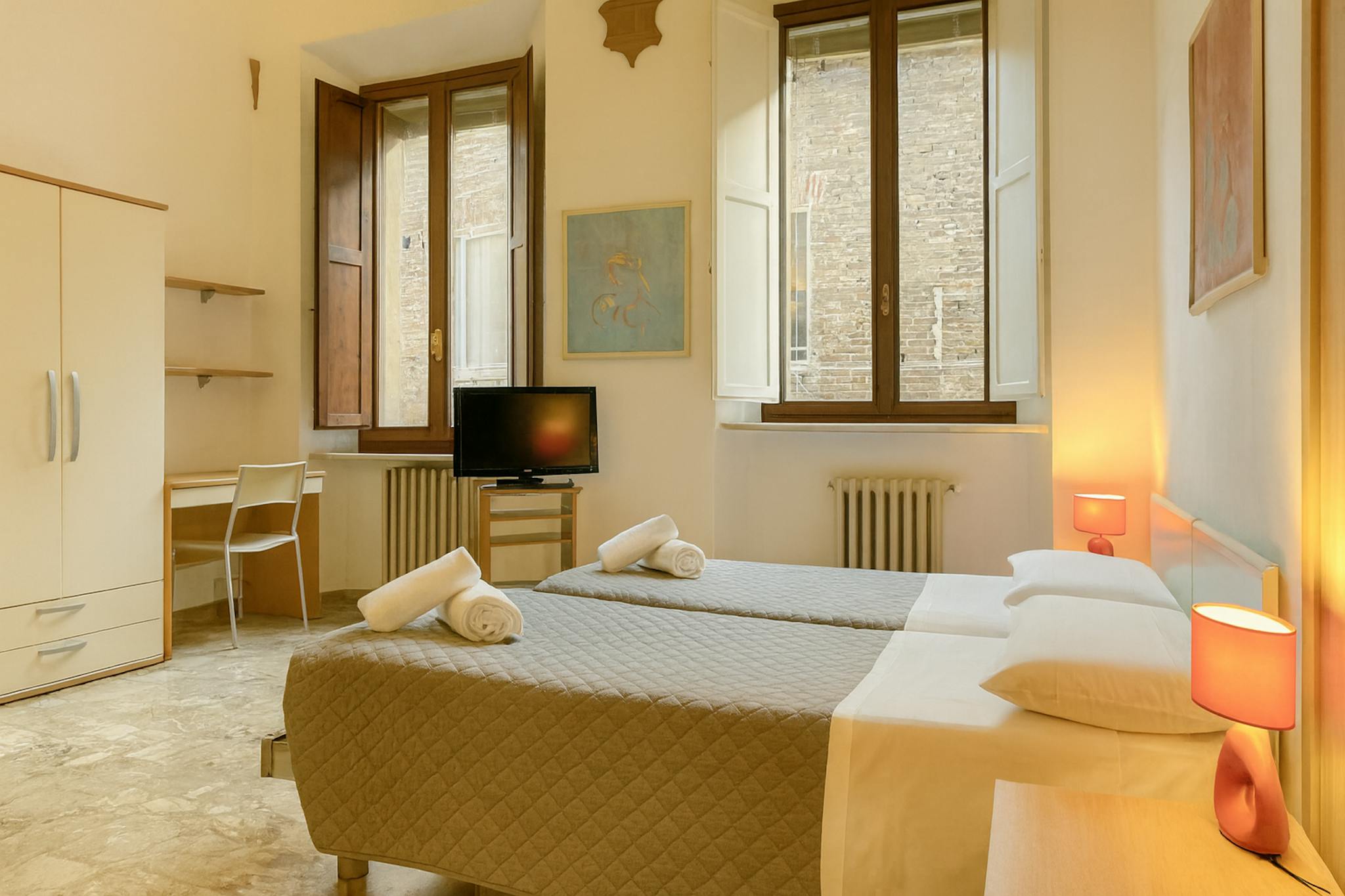 DOUBLE ROOM WITH PRIVATE BATHROOM (RATE PER PERSON) Residence Ciompi is located by the historical center, one step from Piazza del Campo we offer different kind of rooms: single / double / triple all of them with private or shared bathroom A...