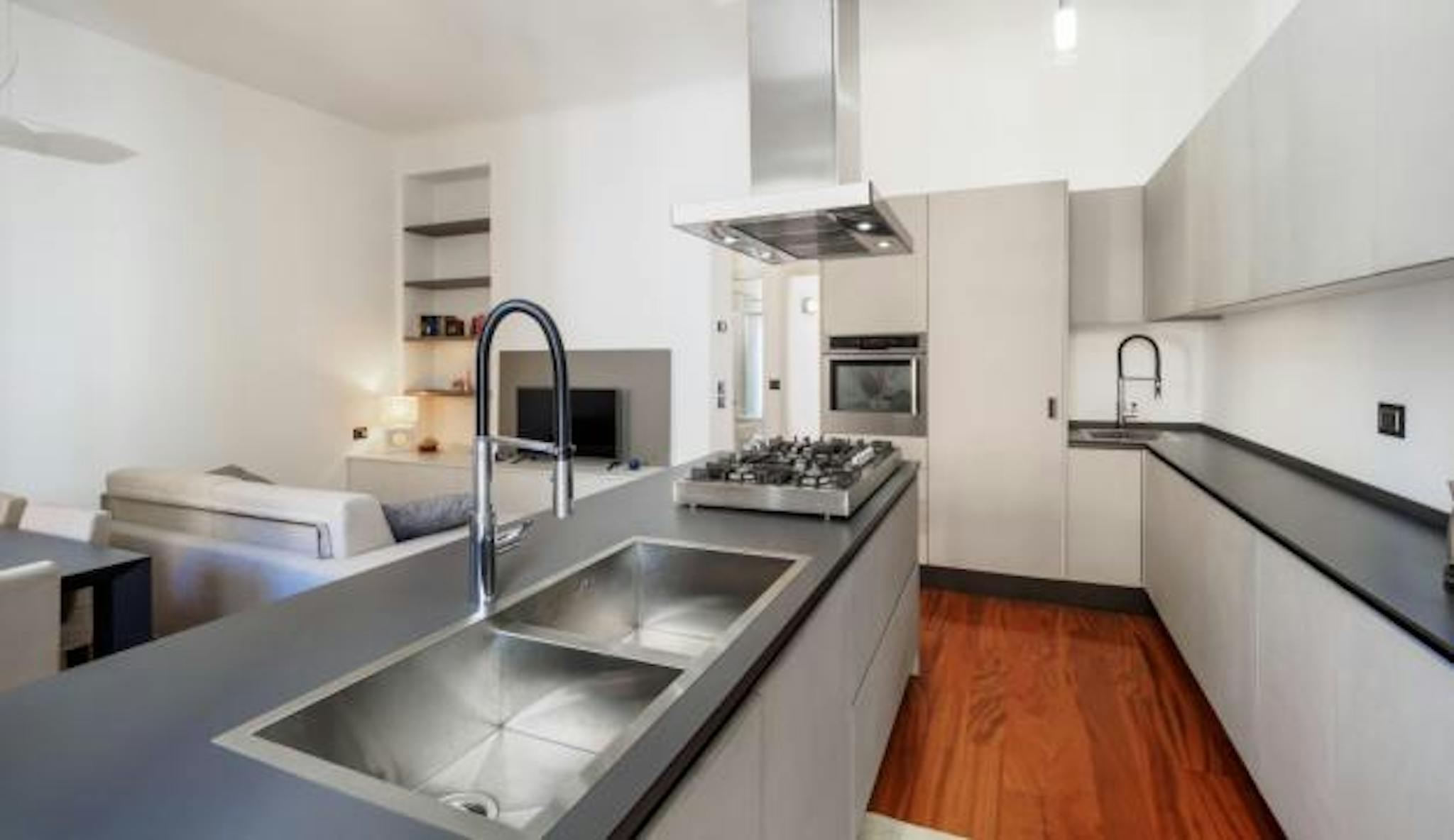 On the fifth floor of an elegant salmon building of early 1900 there is the apartment of Via Washington, with its warm colors, cozy wooden floor, and furnishings. When crossing the front door, you will find yourself in the living room and you will...