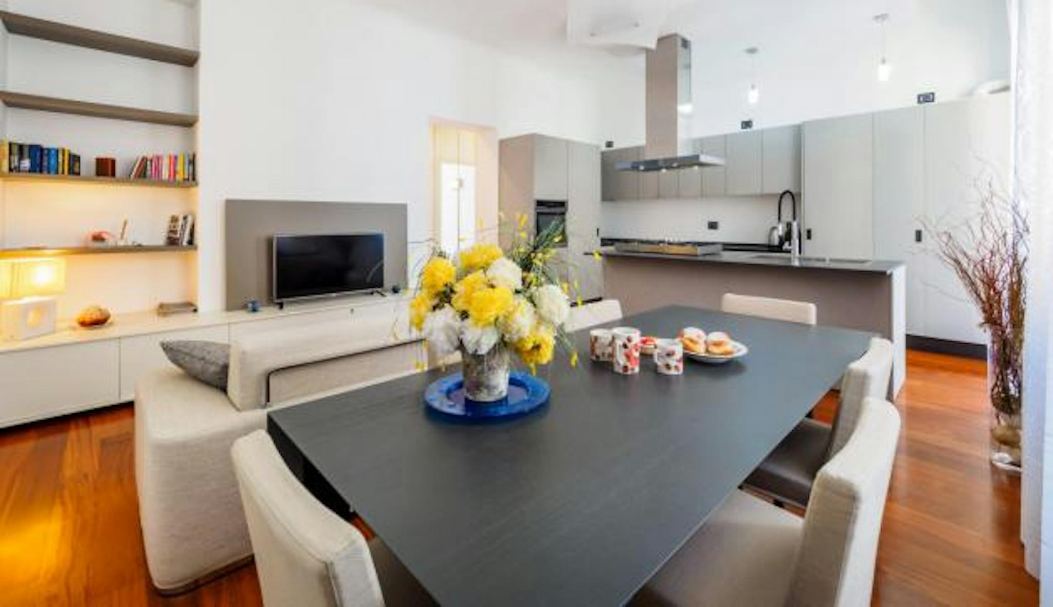 Located just few steps from the Red Line Metro Sesto Rondò, the fully renovated apartment is on the second floor of a residential building. At the entrance, immediately on the left, there is the kitchen, complete with latest appliances. A table ...