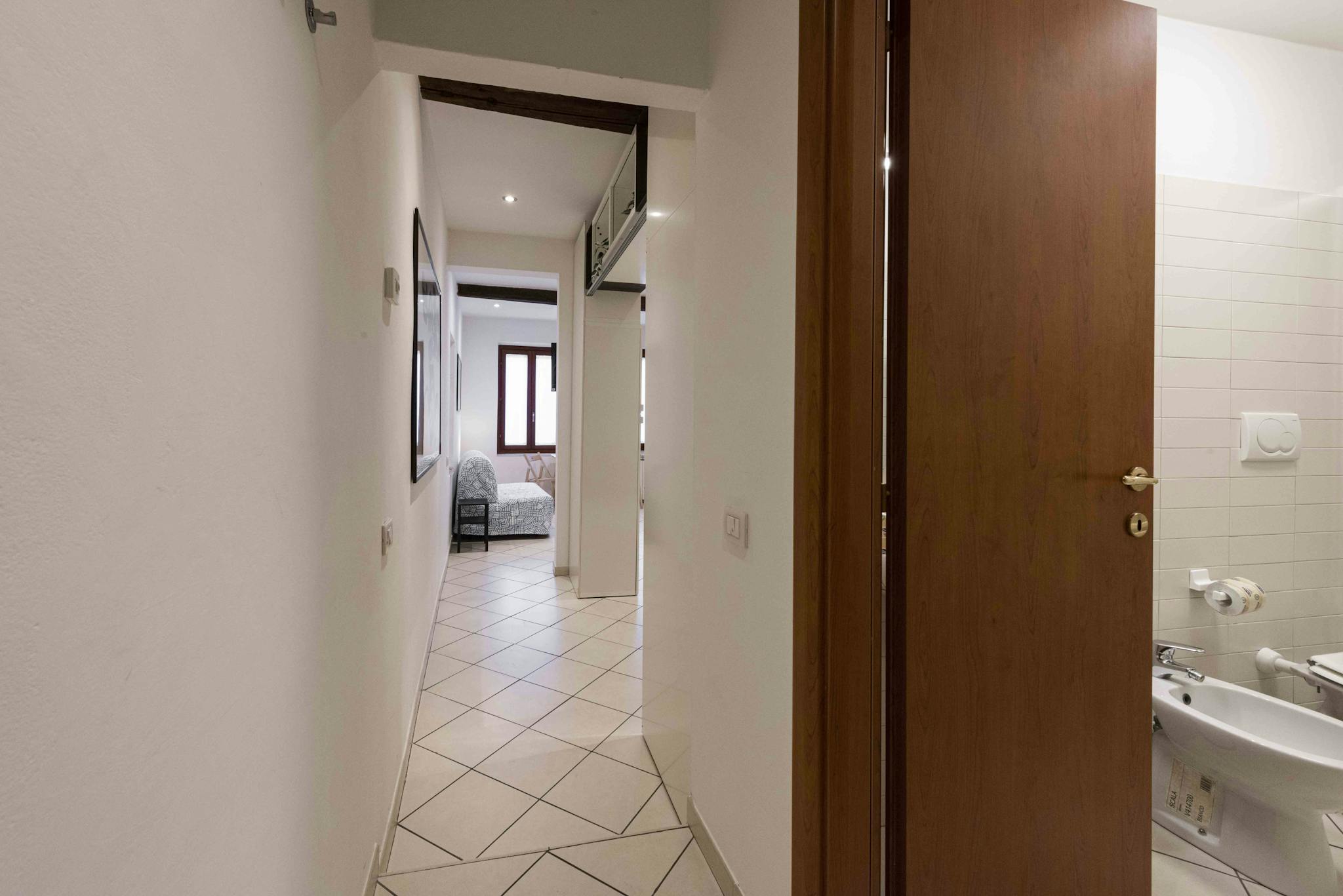 L'appartamento è situato in una zona molto tranquilla, abitata da fiorentini. Ha la fermata dell'autobus a pochi metri dall'ingresso. Si trova al secondo piano ed ha l'ascensore. Le camere sono singole, ma potrebbero anche diventare doppie