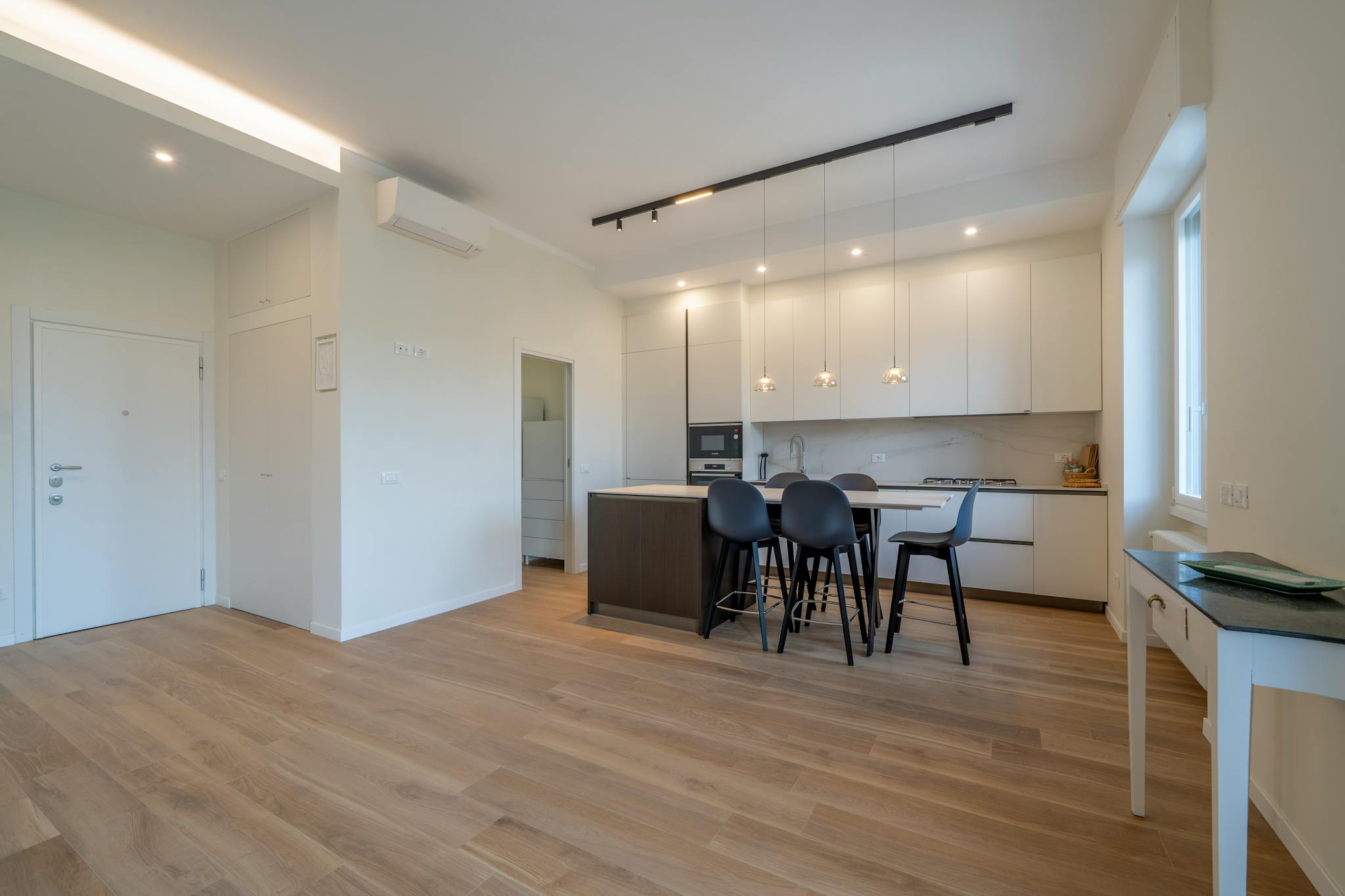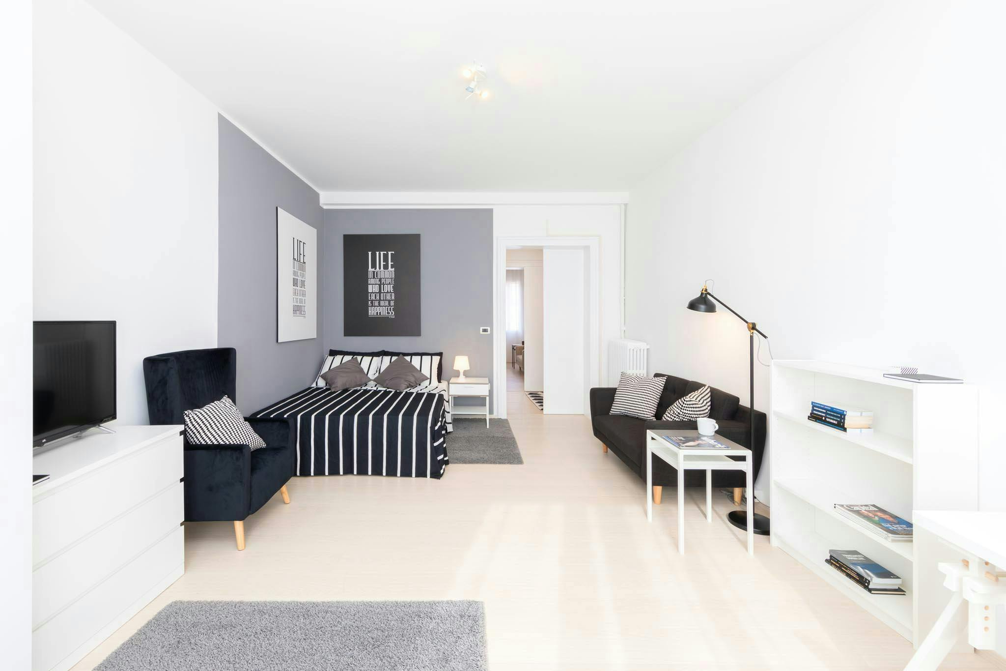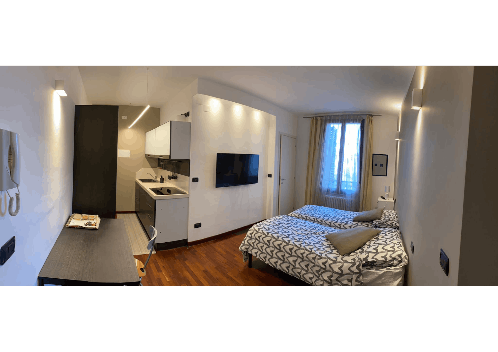 The apartment is BRAND-NEW, JUST RENOVATED, with Modern Style Furniture and it is made up of: 5 Single Rooms, among which one ROYAL SUITE WITH DOUBLE BED, A PRIVATE BATHROOM with bathtub, 3 Single Rooms with double bed, 1 Single Room with single b...