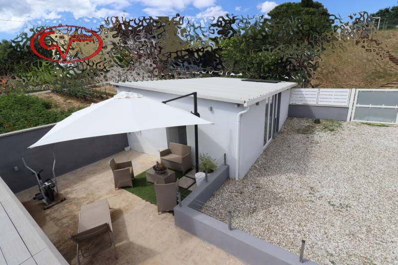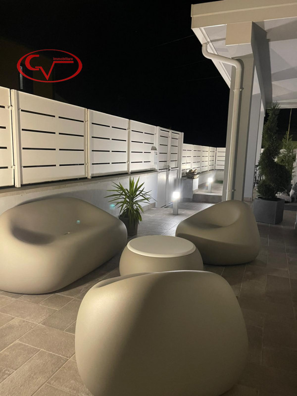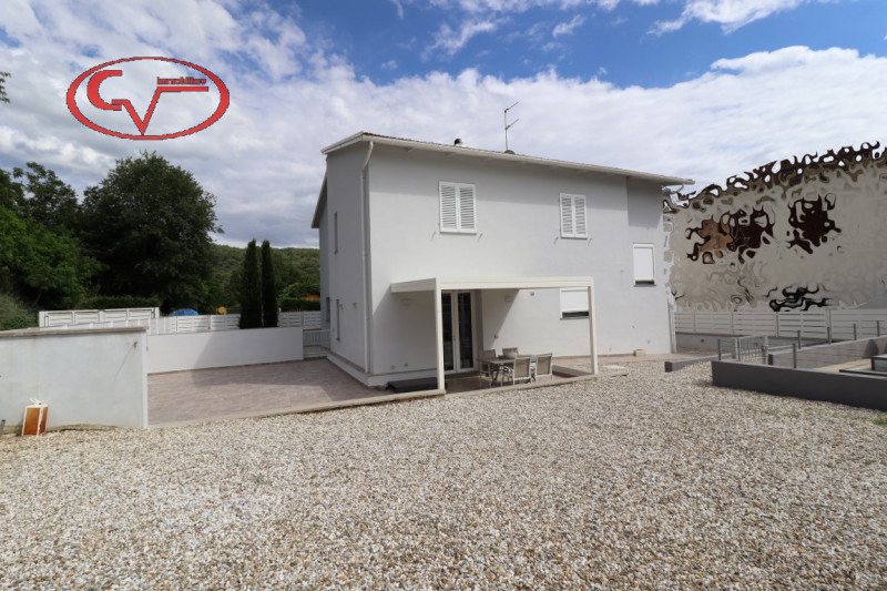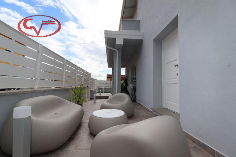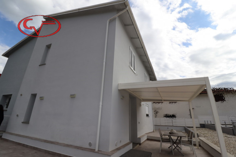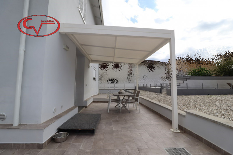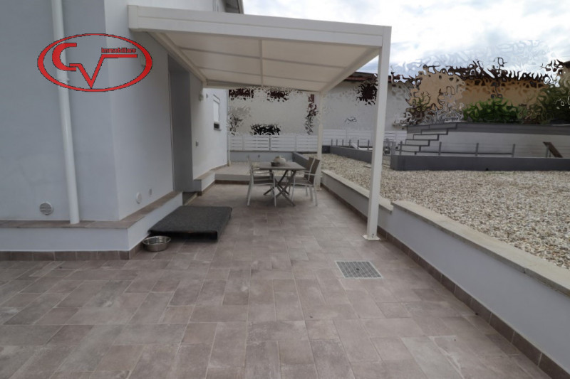 appartamento in bifamiliare, di recente costruzione, in buono stato, con ingresso indipendente da giardino esclusivo, al piano primo, composto da disimpegno, cucinotto, tinello, soggiorno, tre camere e due bagni, accessoriato da garage ed ampia ca...