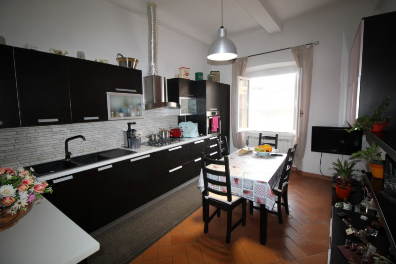 disposto su due livelli, al terzo ed ultimo piano, con ingresso da bel vano scala condominiale e composto da ampio soggiorno e cucina, ripostiglio, bagno con doccia e vasca, camera matrimoniale. Al piano superiore nel sottotetto, studio, soffitta ...