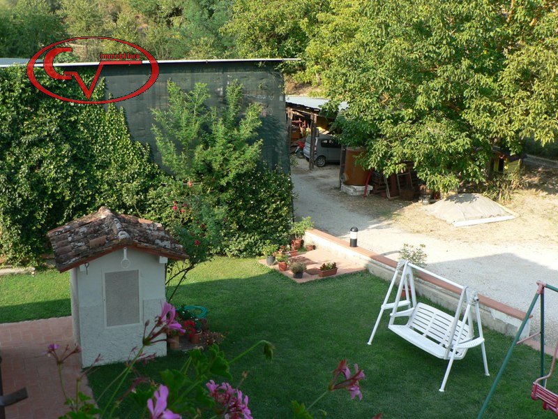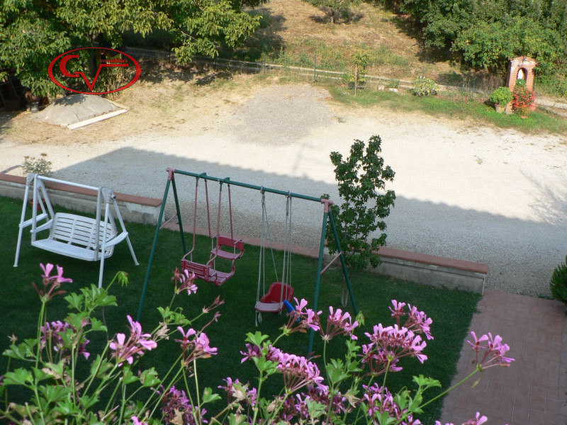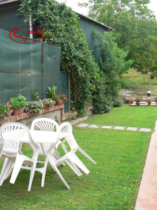 con ingresso indipendente da giardino di proprietà, al piano primo e ultimo, composto da soggiorno, cucina abitabile, tre camere e due bagni, accessoriato da garage e cantina/rustico al piano seminterrato, riscaldamento sia a metano che a legna. l...