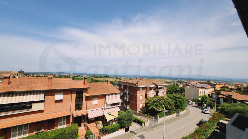 Montaione. In complesso residenziale proponiamo in piccola palazzina al secondo ed ultimo piano, trilocale di 77 mq s.u.l. con 2 terrazzi, un terreno di proprietà ed un garage privato. L'appartamento è composto da un'ampia zona living a vista, cuc...