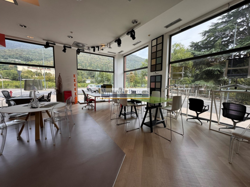 Vendiamo prestigiosissimo negozio fronte strada ad angolo con ampie e luminose vetrate, Arredato e diviso internamente in sale a vetrate a vista. L' immobile si trova in posizione spettacolare e dispone di 6 posti auto con la possibilità di acquis...