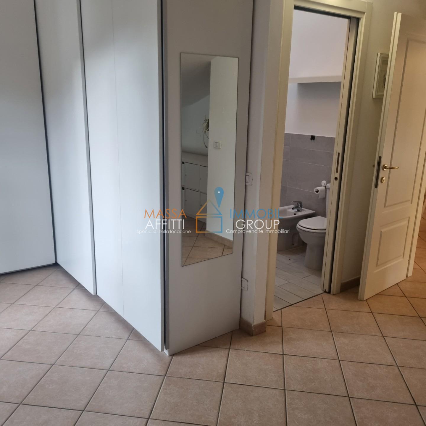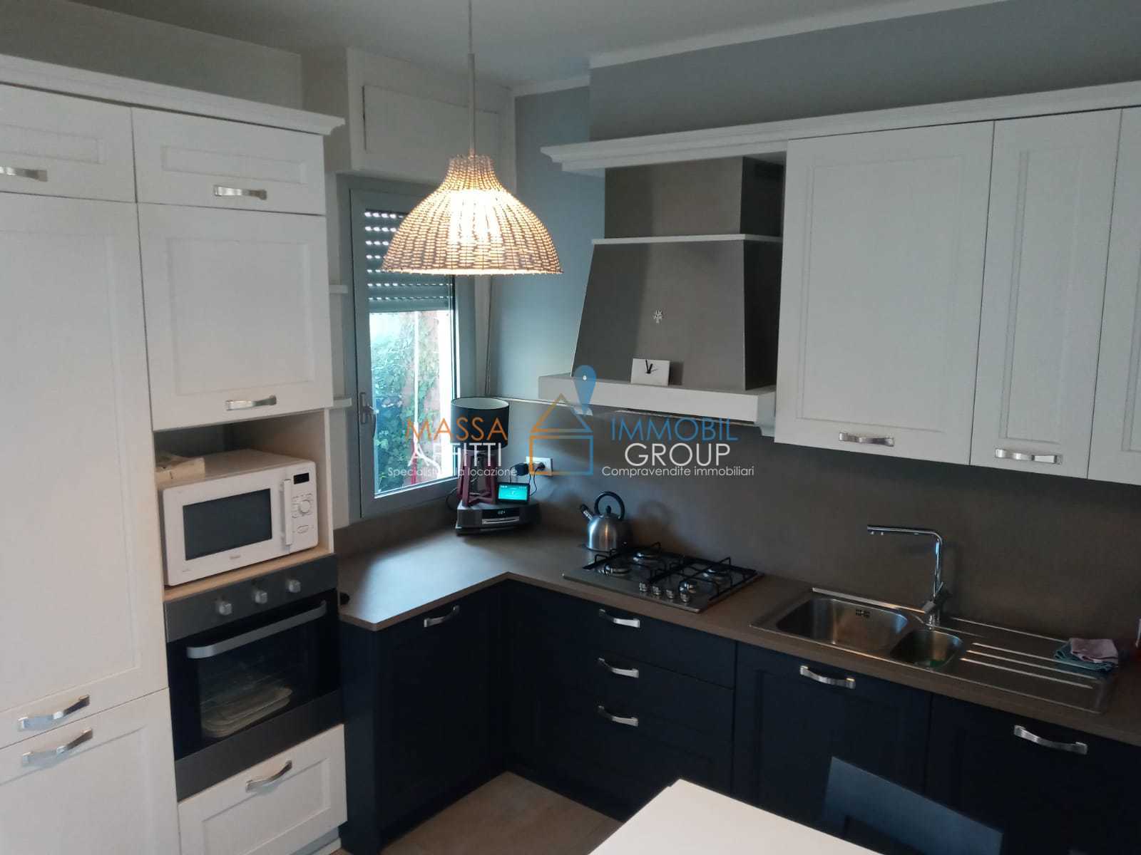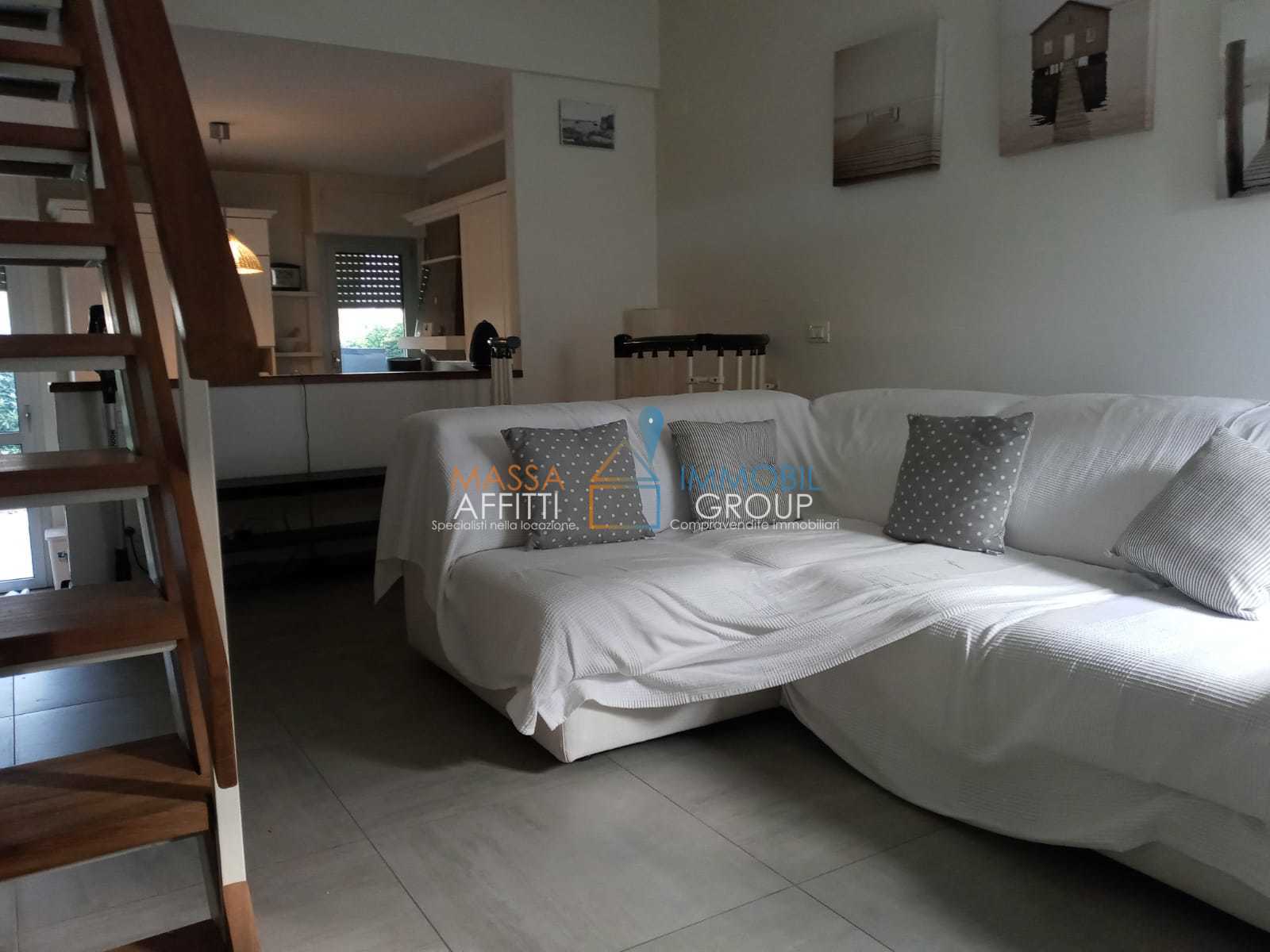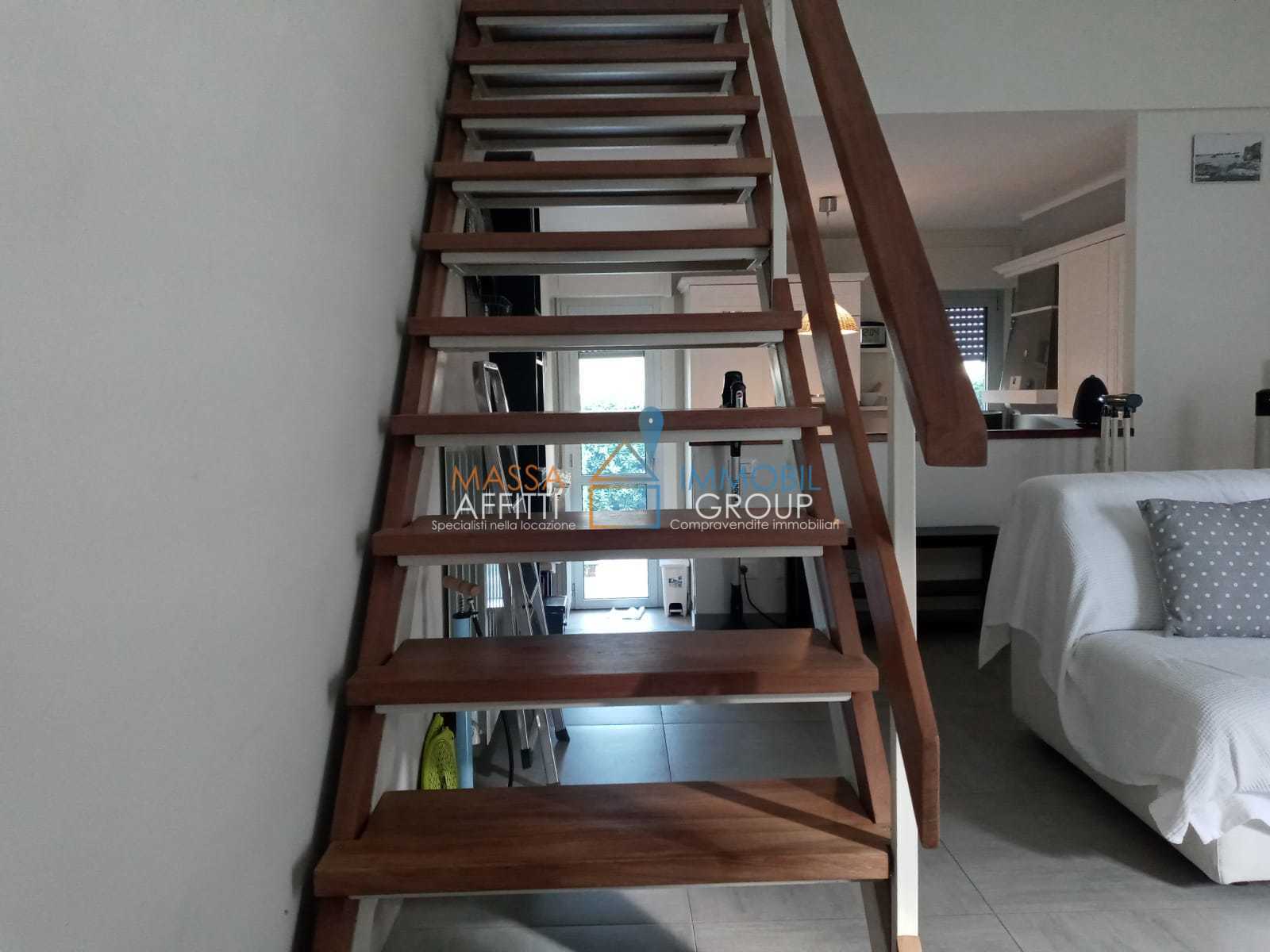 Immobilgroup RIF. 2849Appartamento con Giardino Privato tra Marina di Massa e Ronchi, disposto su due livelli: PT : Zona giorno con cucina open space e accesso al giardino privato sul retro.P1 : Zona notte con camera matrimoniale, camera doppia e ...