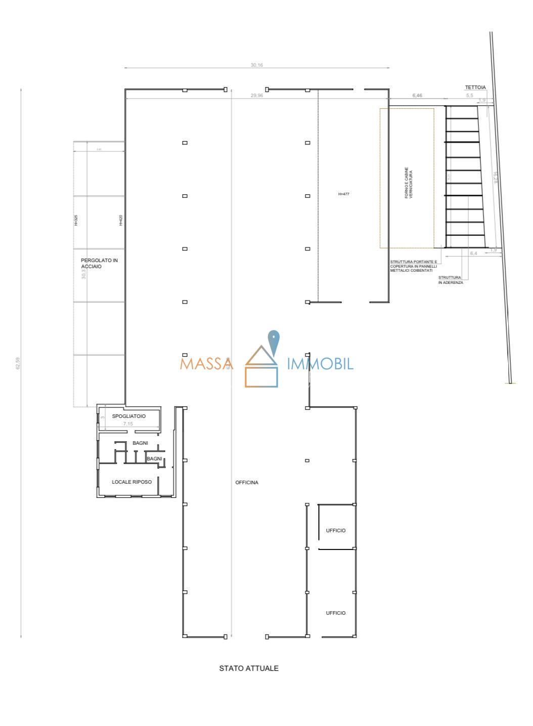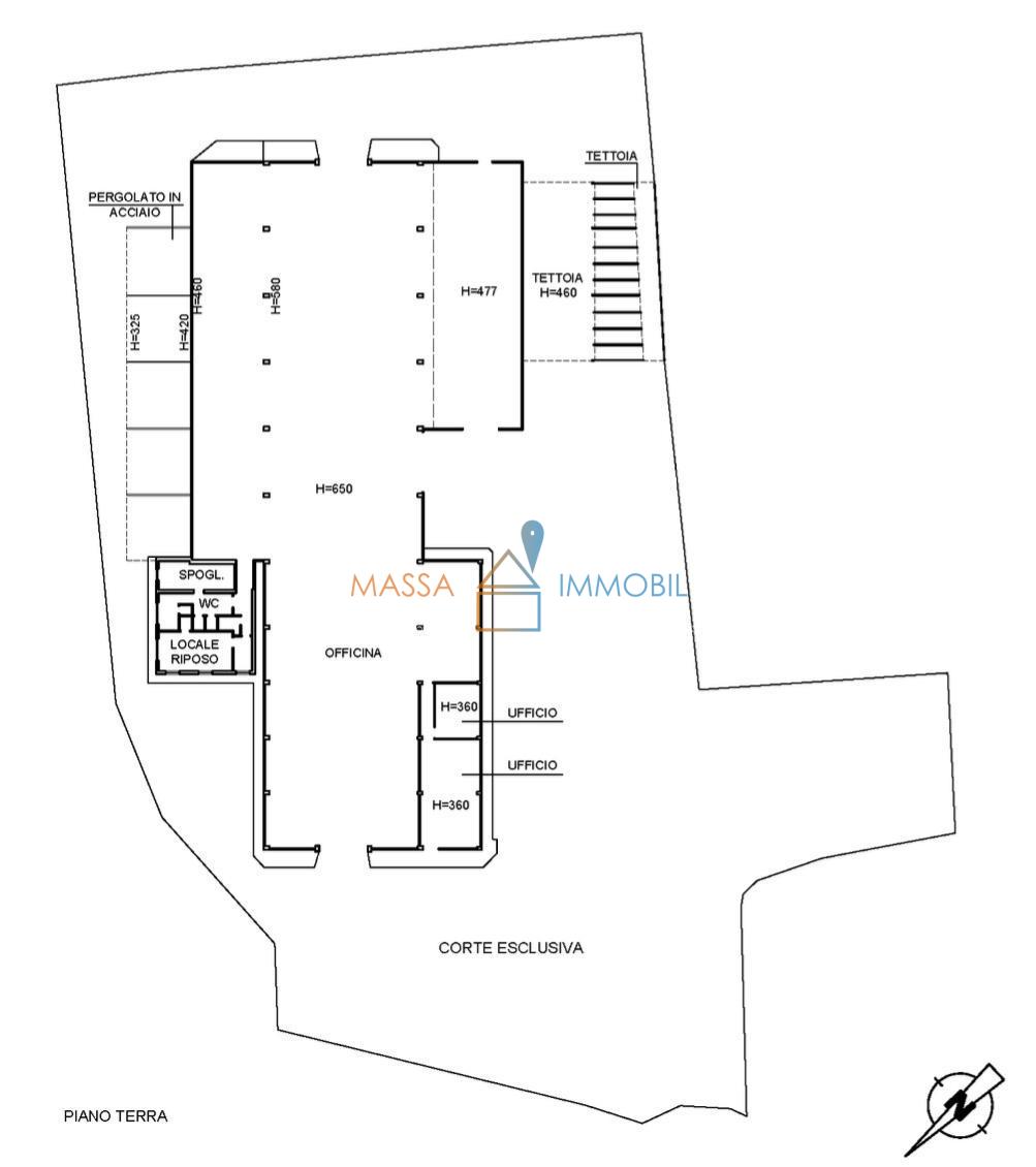 ImmobilGroup Rif. 2835Massa, zona Romagnano- Capannone Industriale, CATEGORIA CATASTALE D/7. 1600 mq disposti su un Unico Livello, comprensivi di: uffici, bagni e spogliatoi. Altezza massima pari a 5,50 Mt.Area esterna pari a 3550 Mq con parcheggi...