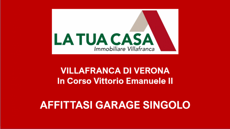 In posizione centralissima, affittasi garage singolo situato in Corso Vittorio Emanuele, a Villafranca di Verona. Il garage è ideale per auto di medie dimensioni, moto o come spazio deposito. Comodo alle principali vie di comunicazione e ai serviz...
