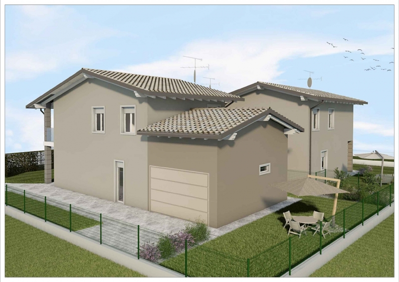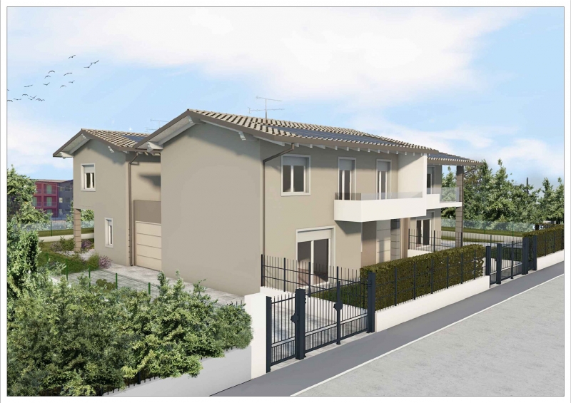SAN POLO nuova villetta indipendente Classe A (finiture personalizzabili) disposta su 2 piani P.T.: soggiorno con zona cucina o cucina separata, ripostiglio, bagno, portico, giardino privato , garage con ingresso indipendente 1°P. 3 camere, bagn...