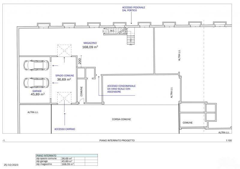 Magazzino di circa 250 mq al piano interrato, con 3 ingressi: 1 da scala portico, 1 da ascensore e scala interna, 1 da rampa accesso garage H 2.10 . Euro 800 mensili Intesa Commerciale 030-2423333 Cod. U25 Intesa Commerciale , opera da decenni su...