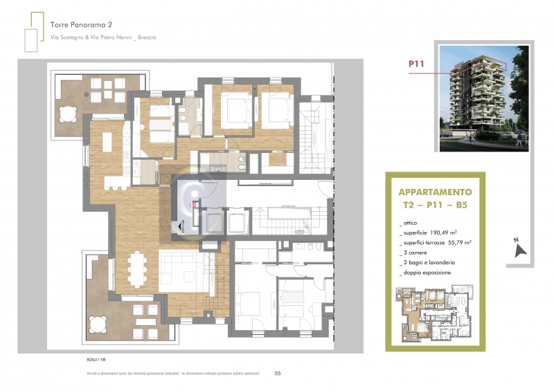 Panoramico attico all'undicesimo piano con 243mq di terrazze in costruzione in esclusiva residenza a Brescia. Strepitoso ultimo piano con fantastica terrazza pertinenziale al dodicesimo piano con predisposizione per piscina. Entrando dalla porta d...