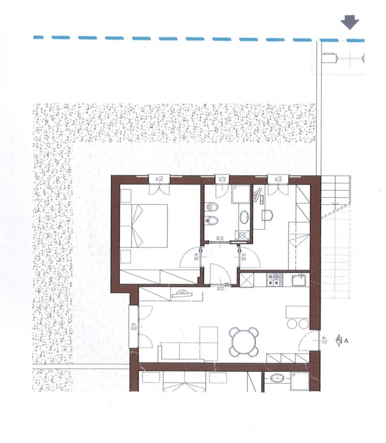TRILOCALE in fase di progettazione con GIARDINO di proprietà da circa 380 Mq.\n\nPosto in piccolo contesto, si compone di soggiorno con angolo cottura, disimpegno notte, due camere, bagno. \nAl Piano S1, direttamente collegato con scala interna, t...