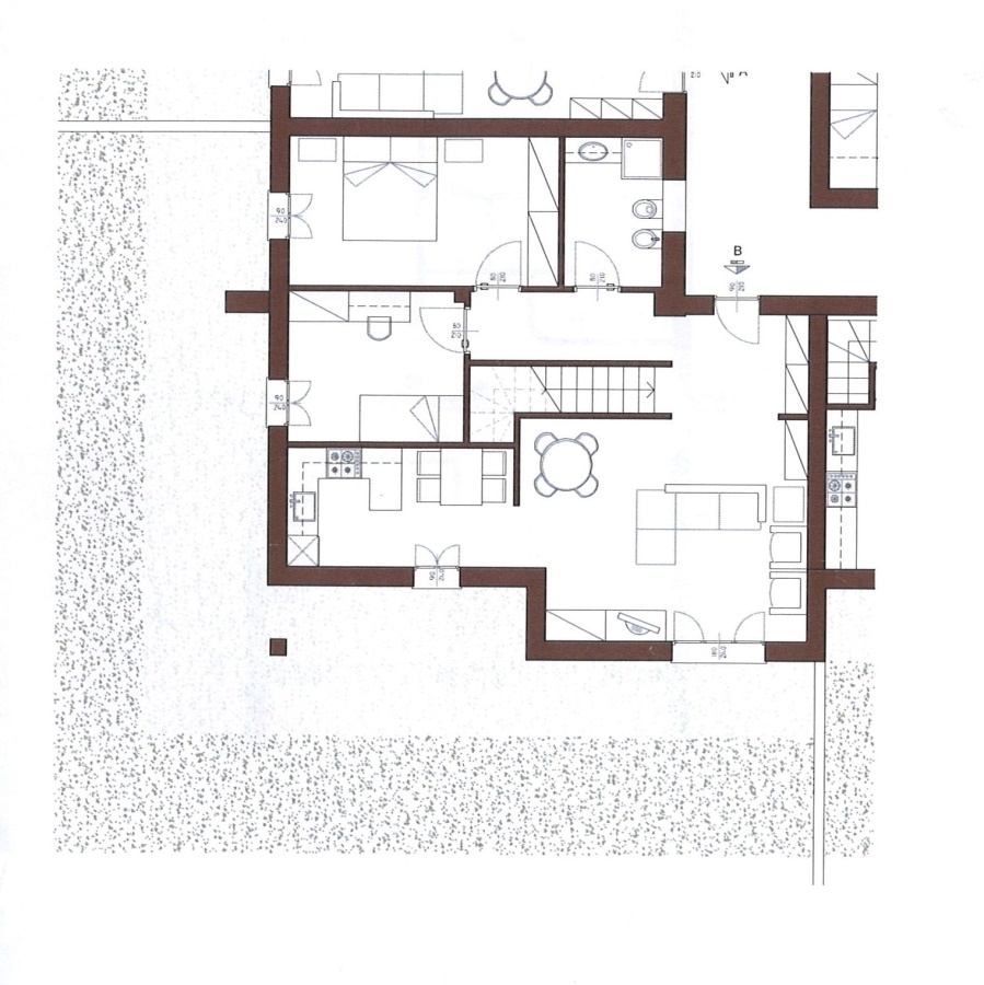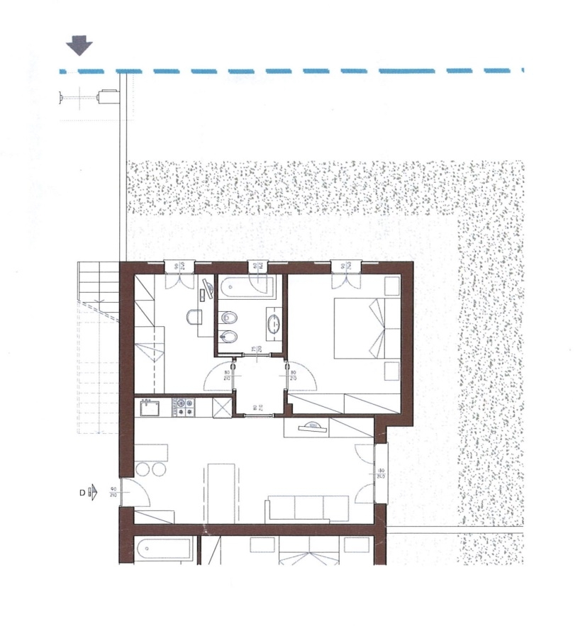 TRILOCALE in fase di progettazione con GIARDINO di proprietà da circa 730 Mq. \n\nPosto in piccolo contesto, si compone di ingresso, soggiorno, cucina separata, disimpegno notte, due camere, bagno. \nAl piano S1 direttamente collegato con scala ...