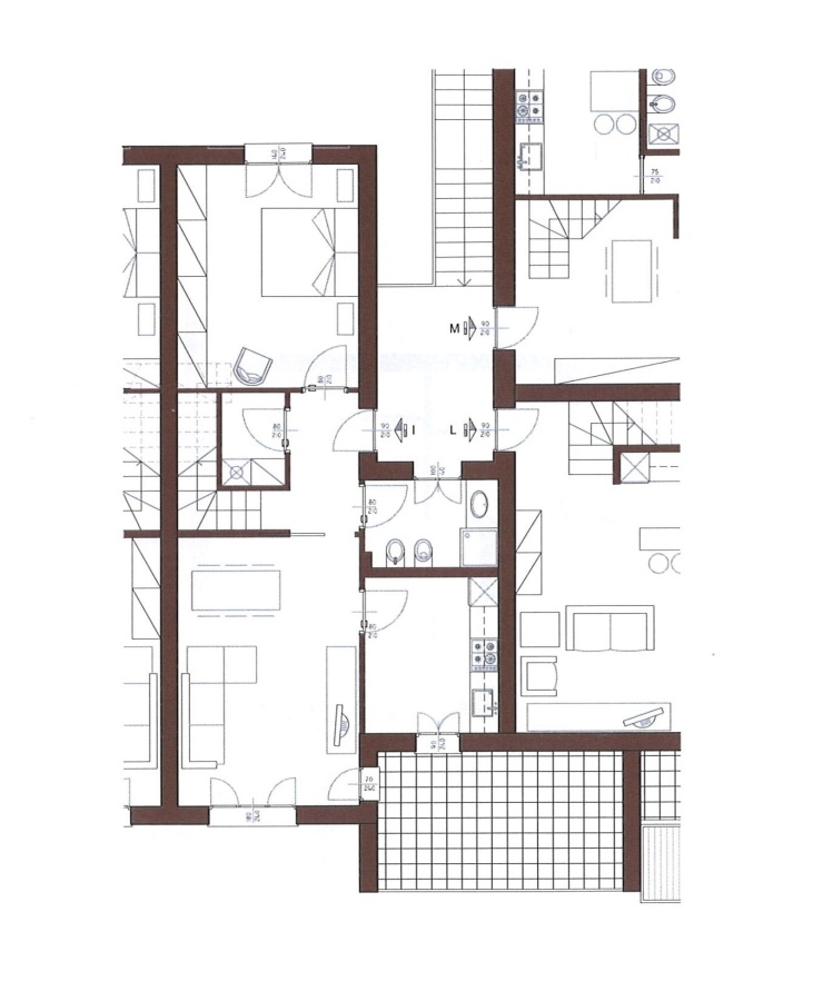 QUADRILOCALE in fase di progettazione.\n\nPosto in piccolo contesto, si compone di soggiorno, cucina abitabile, camera matrimoniale, cabina armadio, bagno e tre balconi. \nPiano mansarda da circa mq, 44, per la realizzazione altri due locali e lav...