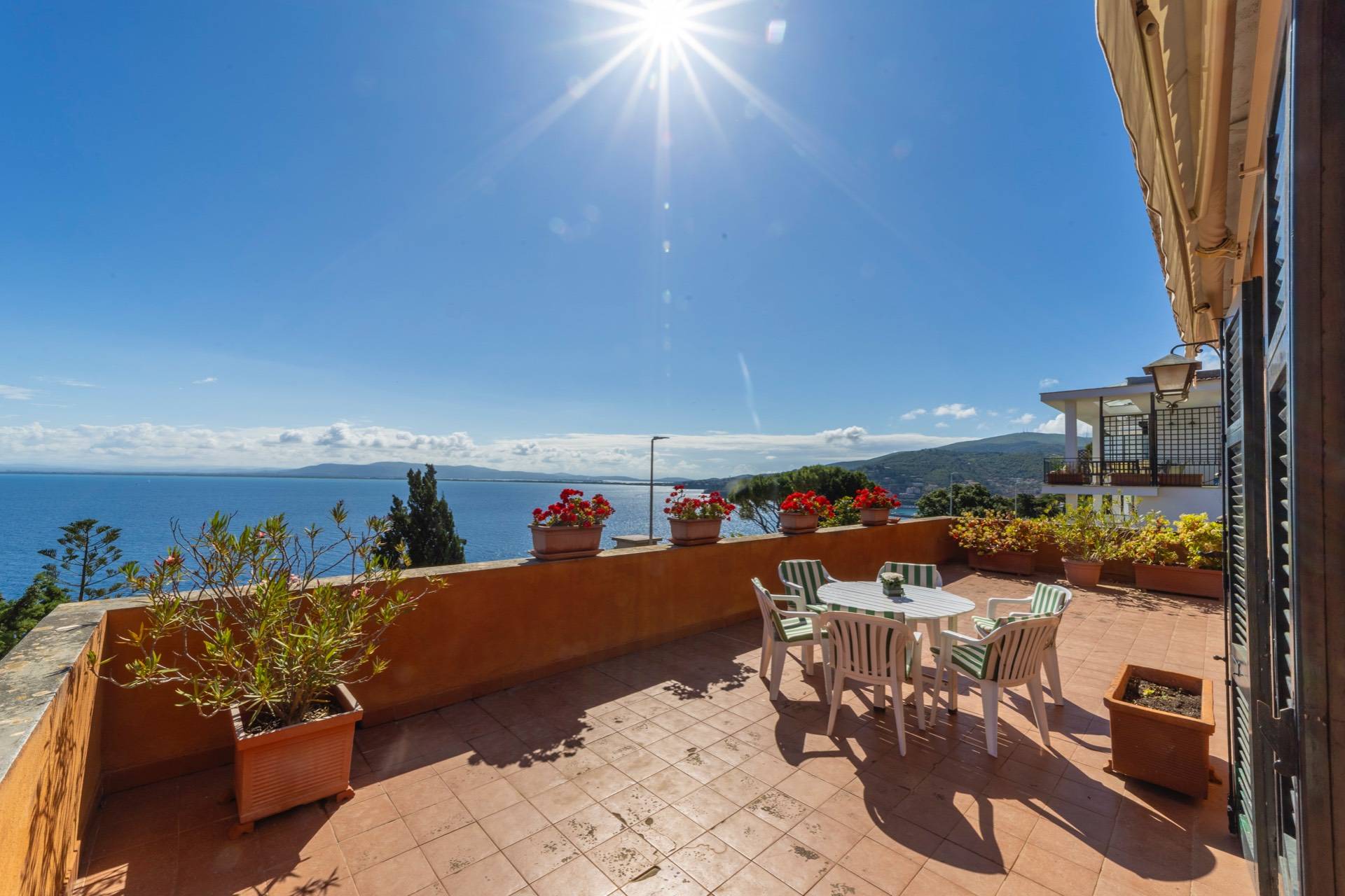 Porto Santo Stefano Posizionata nella parte alta della rinomata "Via del Sole", proponiamo in vendita una esclusiva porzione di Villa. Al piano attico di una Villa in pietra dall'architettura elegante la proprietà si sviluppa in una grande zona ...