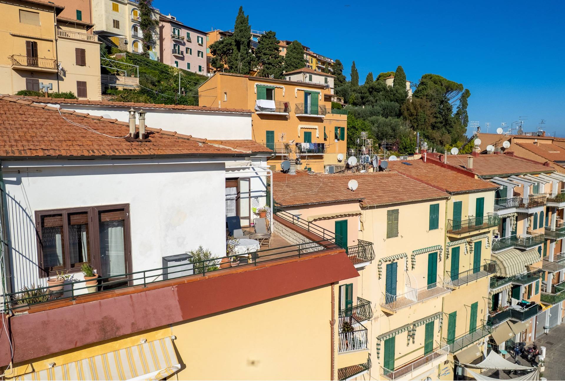 Porto Santo Stefano Direttamente sul mare, affacciato sulla Piazza più bella del paese, questo attico vanta una grandissima terrazza con stratosferica vista mare. L'appartamento vanta ambienti spaziosi e luminosi, tipici delle costruzioni signor...
