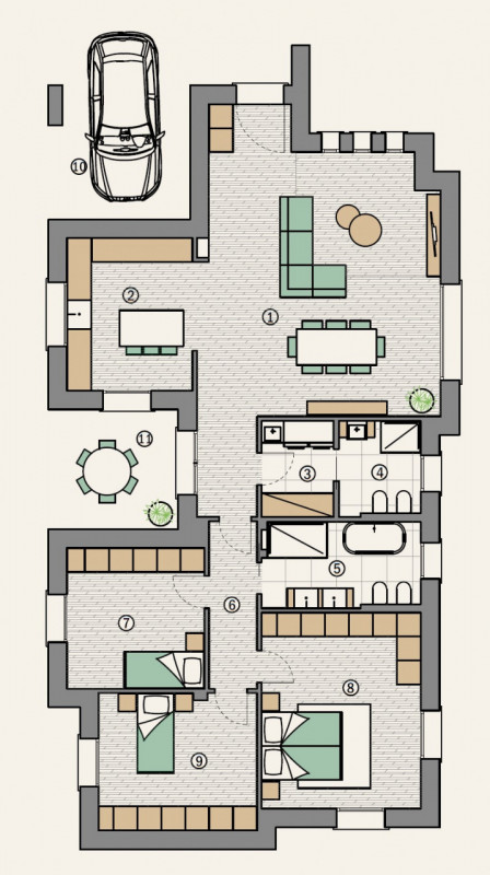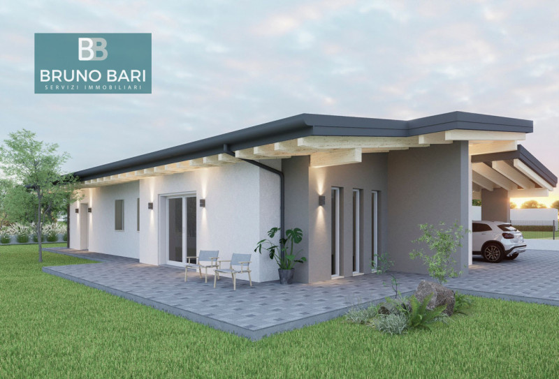 A pochi passi dal centro paese in prossima relaizzazione proponiamo moderna casa singola tutta su un piano. L'imobile sarà così disposto: Ingresso su ampio e luminoso soggiorno, cucina separabile, due bagni oltre lavanderia, due camere singole e u...