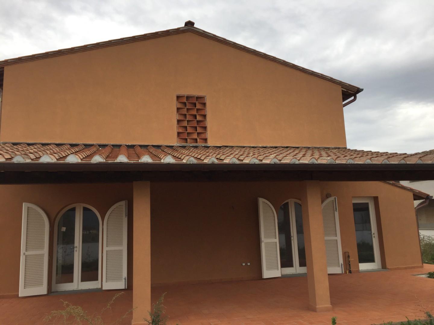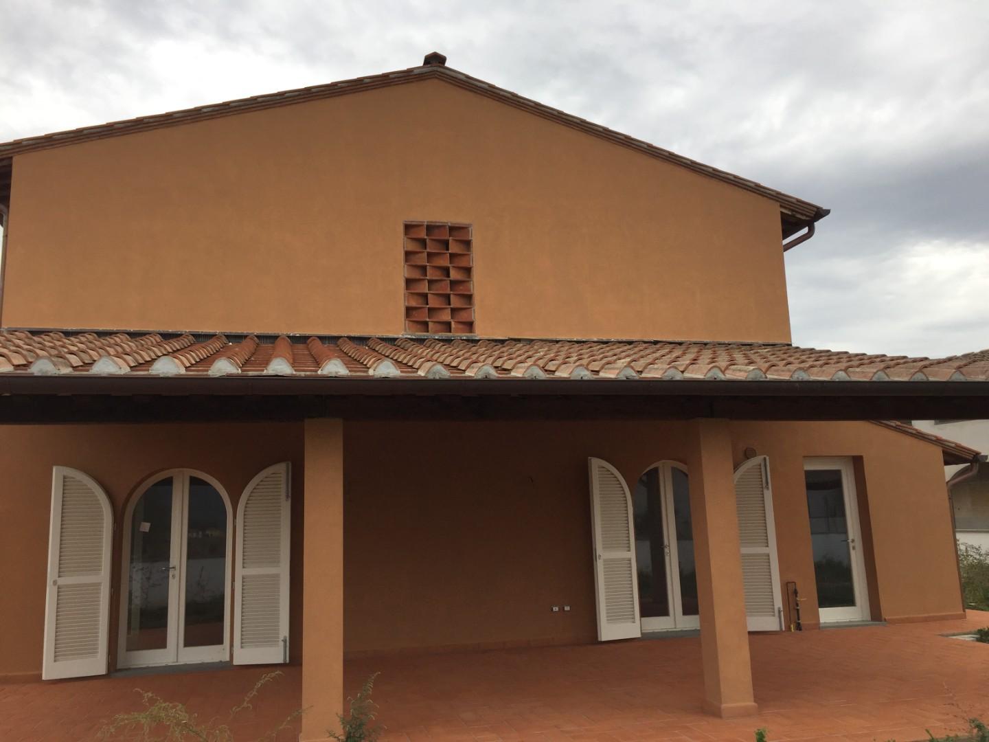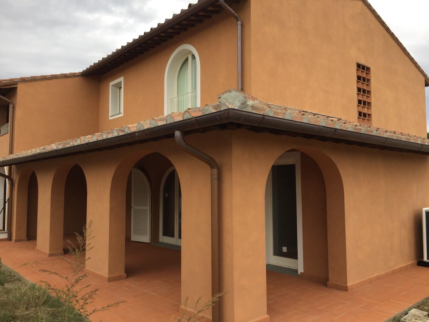 Calcinaia - Montecchio - Villetta angolare nuova costruzione Classe A: 80 mq a piano oltre meraviglioso loggiato, giardino su tre lati per 300 mq circa, garage di 22 mq, posto auto e locale tecnico con ingresso indipendente. Piano terra: ampio sog...