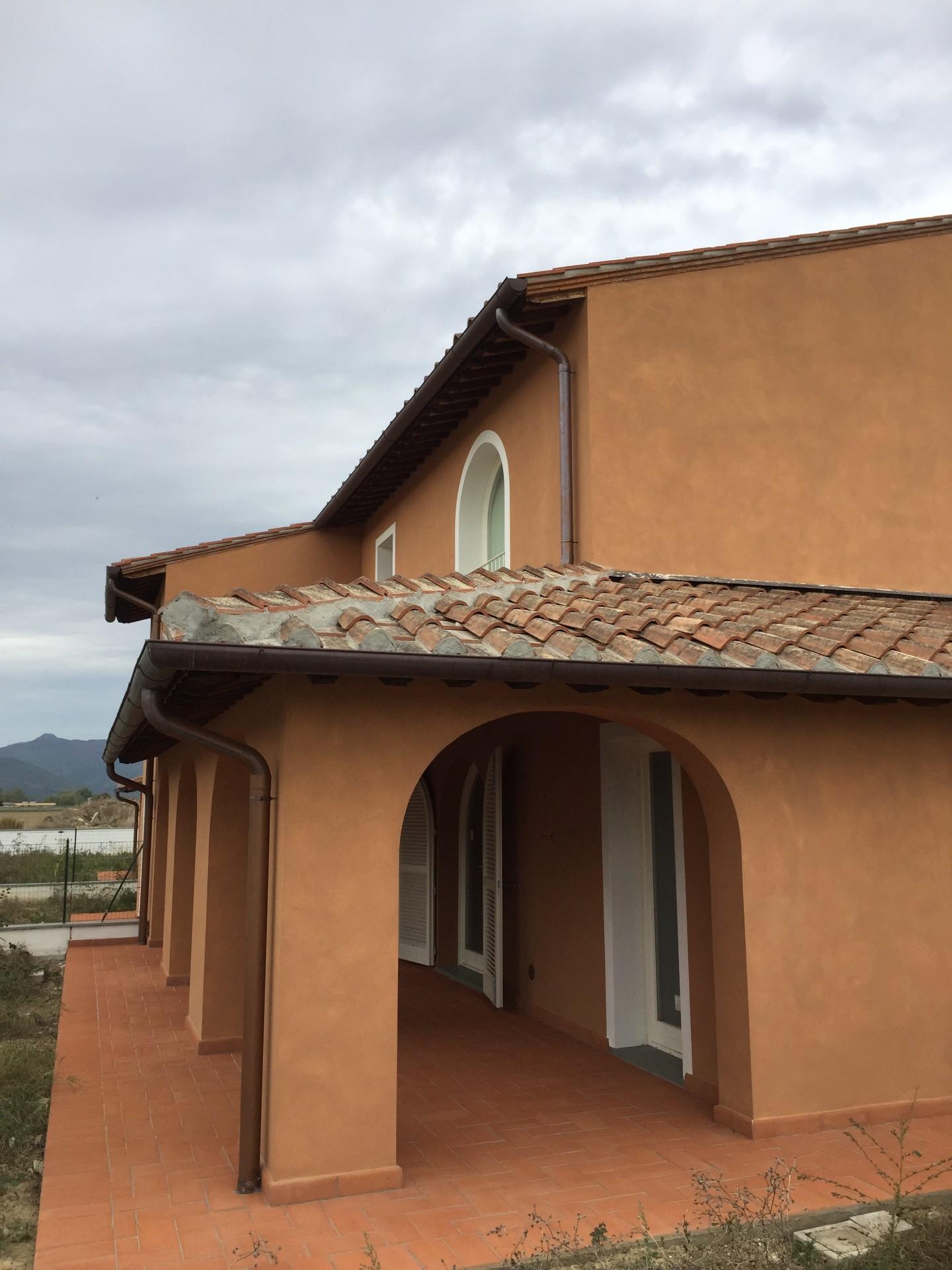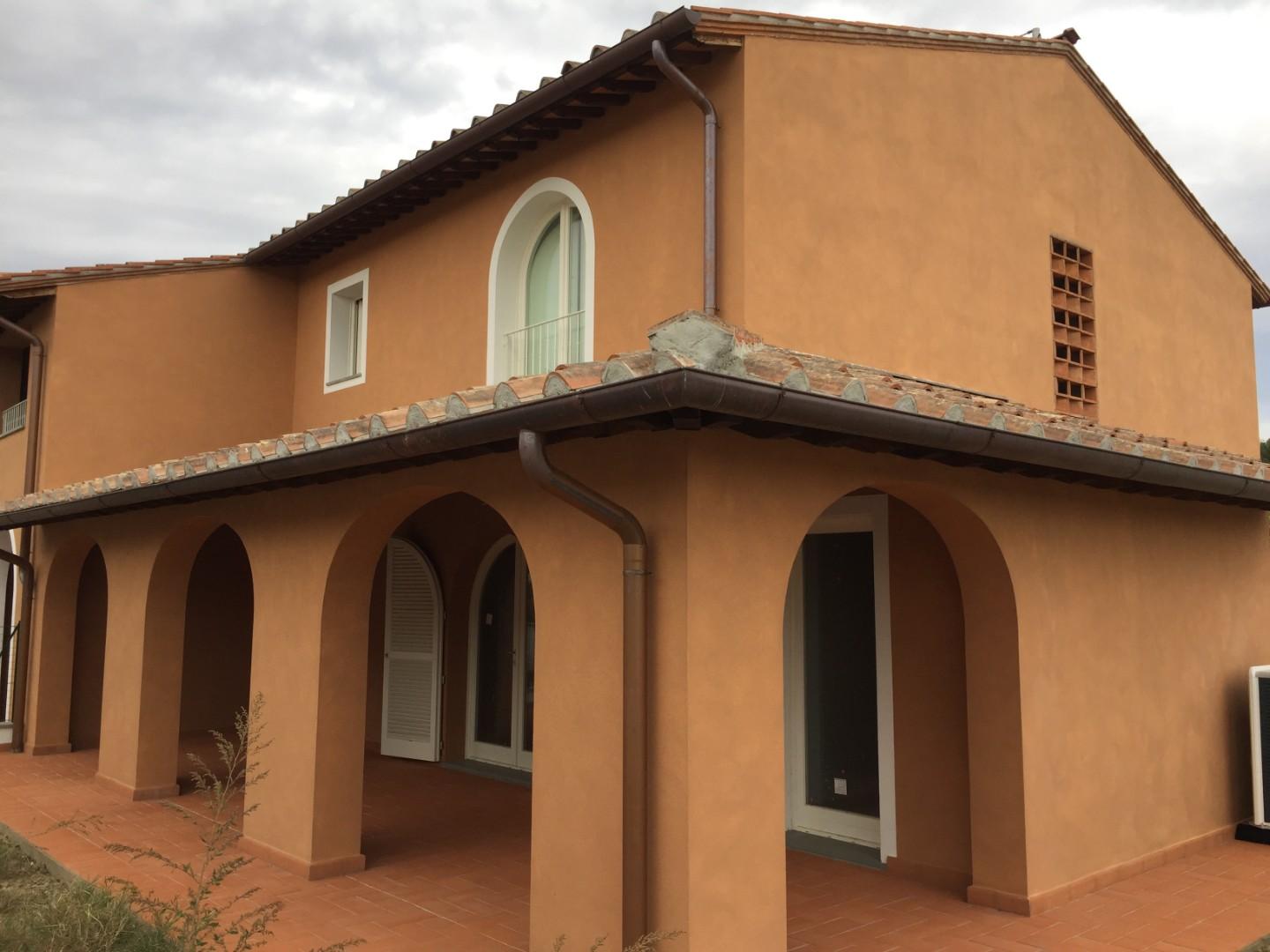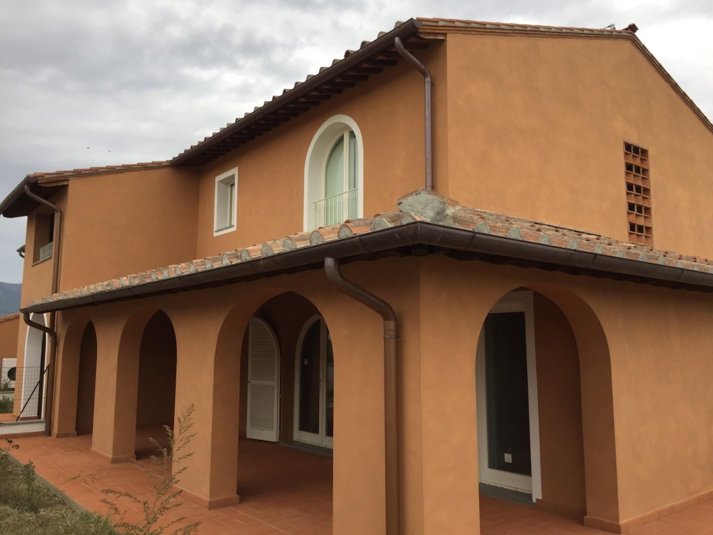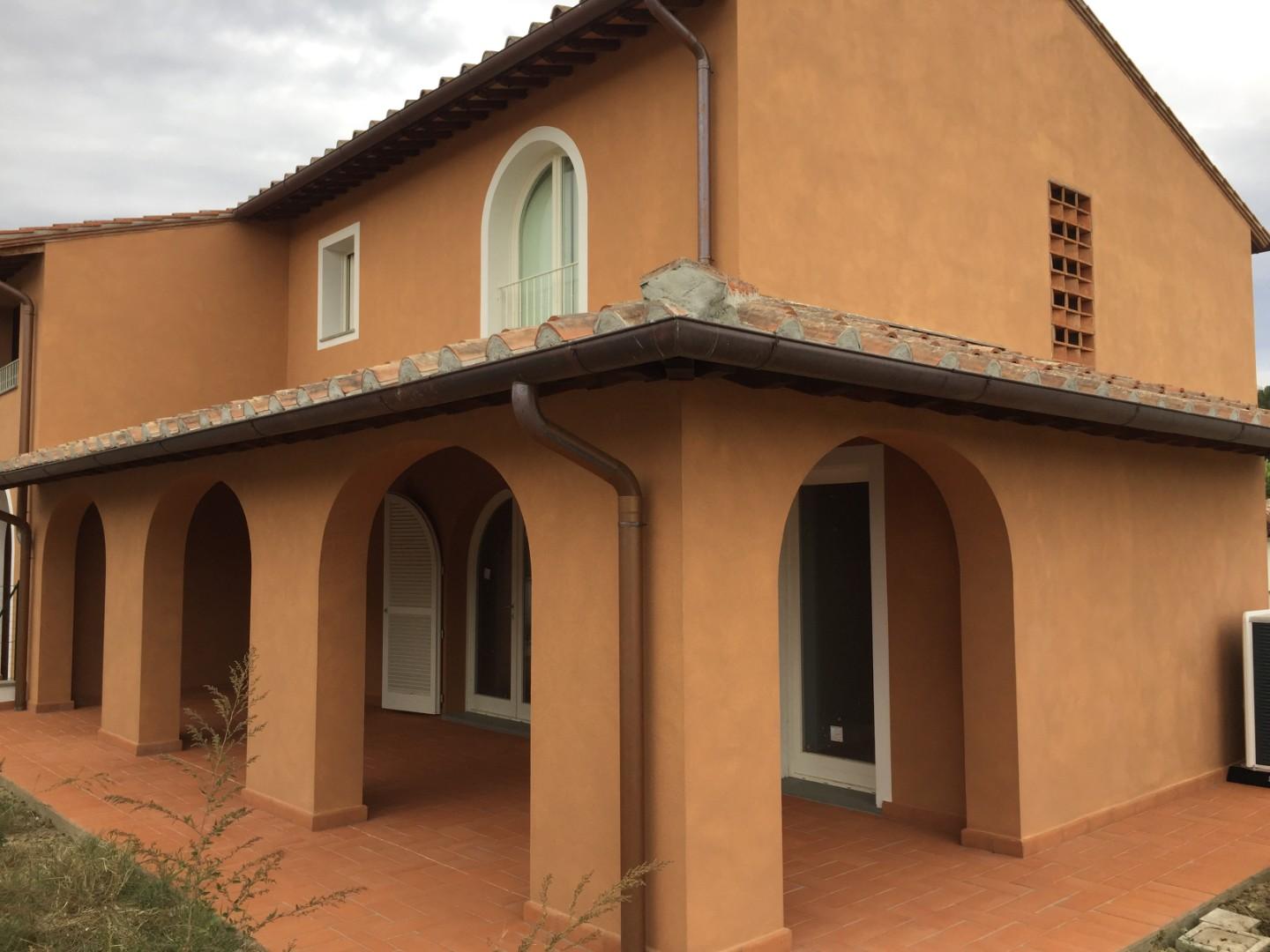 Calcinaia - Montecchio - Villetta angolare nuova costruzione Classe A: 80 mq a piano oltre meraviglioso loggiato, giardino su tre lati per 300 mq circa, garage di 22 mq, posto auto e locale tecnico con ingresso indipendente. Piano terra: ampio sog...