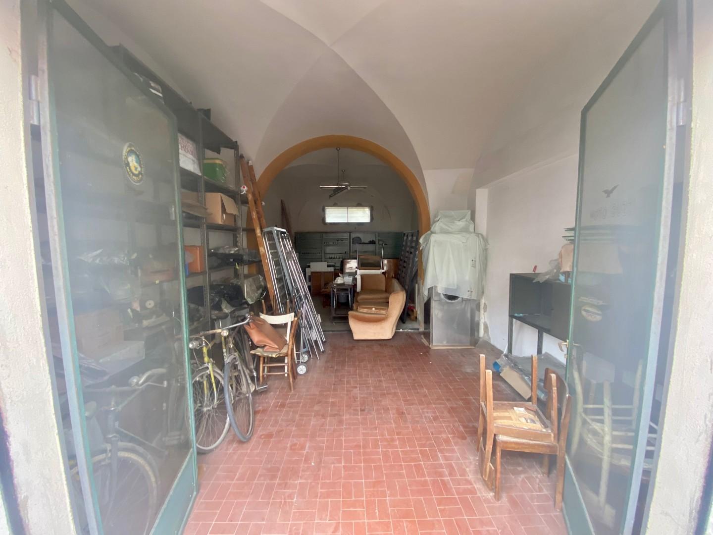 Pontedera via Fiorentina ampio locale uso garage di 40 mq circa, composto da un unico locale, soffitto con volte a crociera, larghezza apertura serranda 189 cm Codice riferimento agenzia 5047D