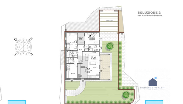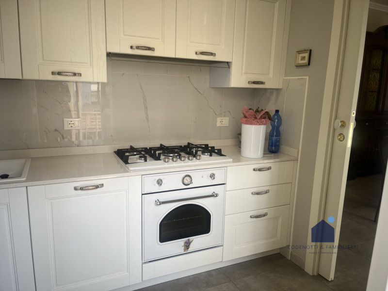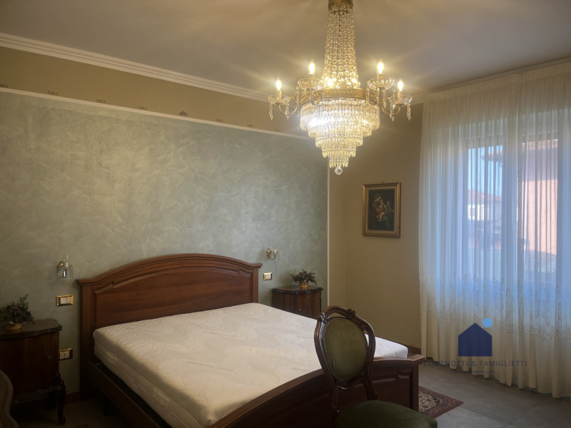 Elegante villa bifamiliare in zona riservata e comoda al centro del paese. Soluzione abitativa quadrilocale al piano rialzato dalle metrature introvabili composta da accogliente ingresso, luminoso e ampio soggiorno con pavimentazione in marmo, cuc...