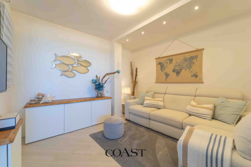 Benvenuti in questo splendido appartamento trilocale con vista mare, situato al piano terra di un curato e piacevole residence. Con una veranda angolare che offre una vista mare, questo appartamento è il luogo ideale per chi cerca tranquillità e c...