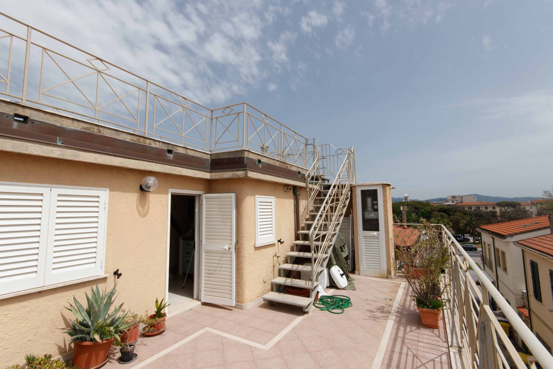 Viareggio traversa Passeggiata a mare, casa terratetto con grande terrazza al piano attico. L'immobile è disposto su più livelli con ingresso indipendente: il piano terra è composto dal soggiorno, cucinotto e bagno; il piano primo da camera matrim...
