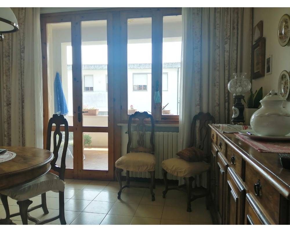 Ampio appartamento di vani 8 composti da cucinotto, sala da pranzo, doppia sala, 3 camere, 3 bagni, garage e orto a Terricciola in vendita. L'appartamento si trova al primo e ultimo piano di un edificio di 3 unità, ingresso in zona giorno compost...