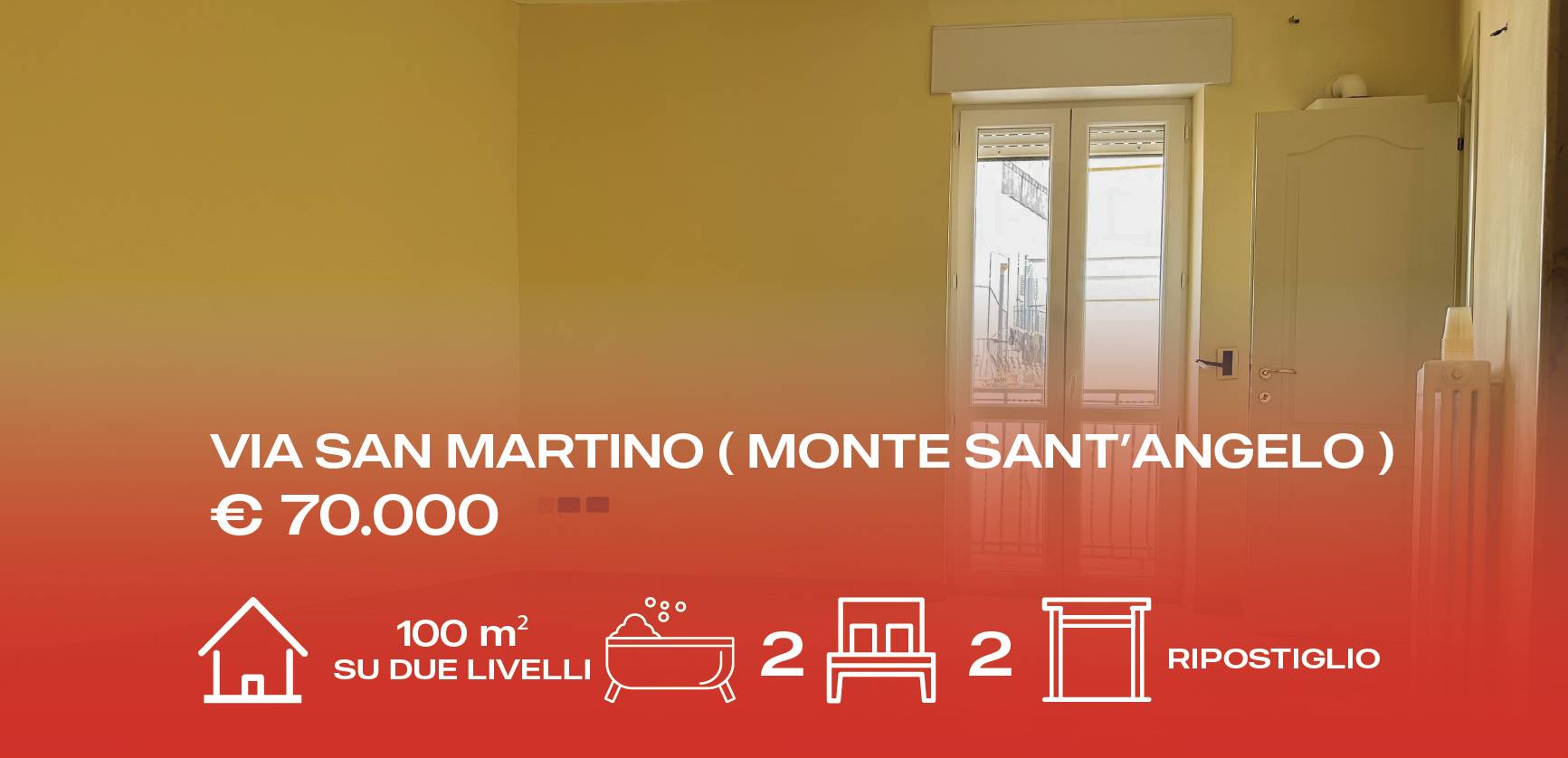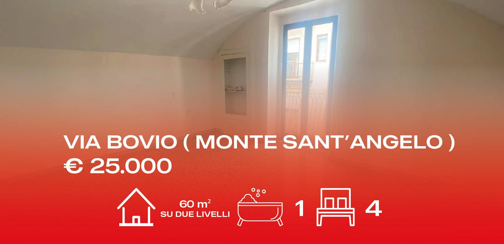 Casa in vendita - Via Bovio (Monte Sant'Angelo) 60 MQ disposti su due livelli, ideali per una gestione funzionale degli spazi 4 camere, perfette per famiglie o per chi desidera più ambienti 1 bagno, pratico e ben organizzato Struttura accoglie...