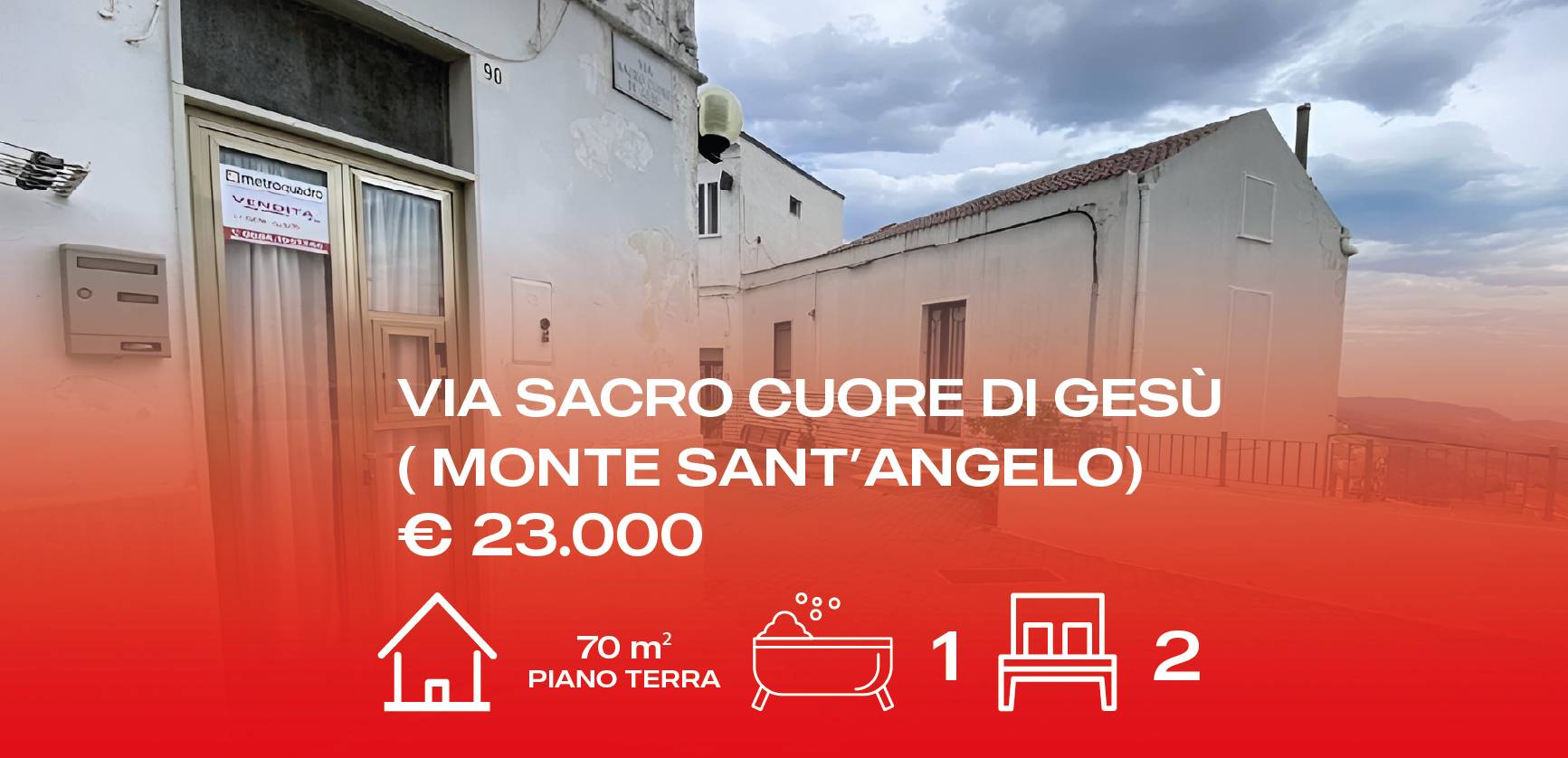 MONTE SANT'ANGELO Via Sacro Cuore di Gesù A due passi dalla "Chiesetta" vi propongo la vendita di un trilocale al piano terra con possibilita di apertura di una seconda porta in caso di divisione in due unità in caso di bed and breakfast.Indicat...