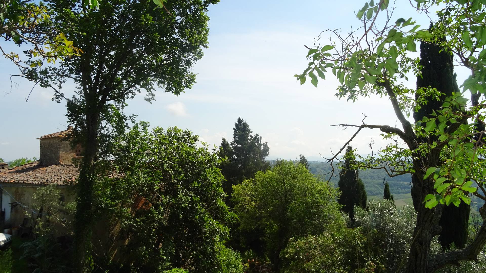 Rif. 1227-C - Montespertoli versante San Casciano - In zona superpanoramica e dominante, ristrutturato di recente, vendesi metà colonica terratetto angolare libera su tre lati composta da otto locali, due bagni-wc, due annessi singoli ed un appezz...
