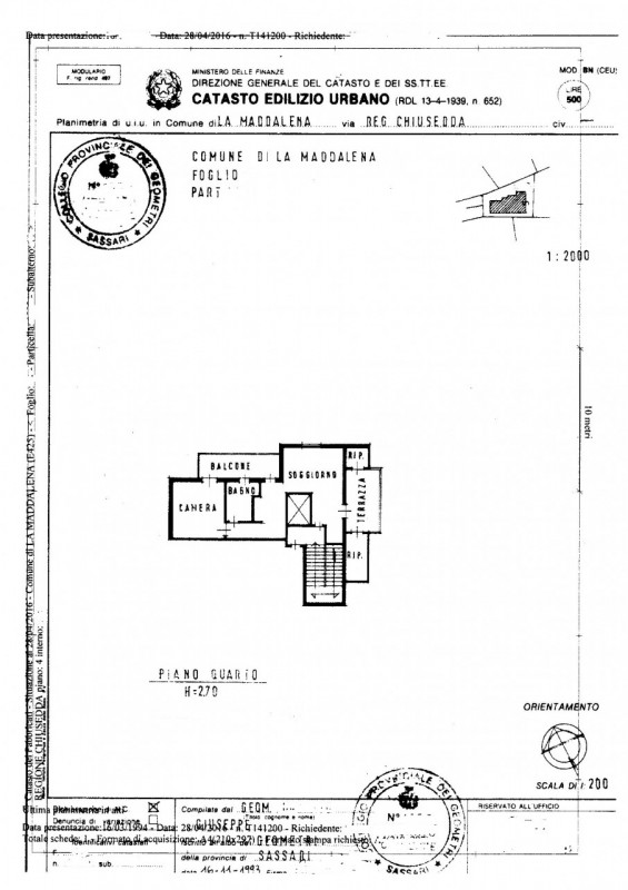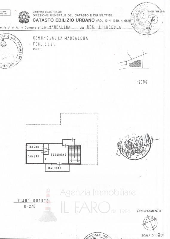 Ci troviamo in via Chiusedda, in contesto tranquillo e poco distante dal centro storico del paese di La Maddalena (1,3 Km) e dalle spiagge di Spalmatore (3 Km). L'appartamento di circa 71 mq. catastali, è realizzato al quarto ed ultimo piano (deli...