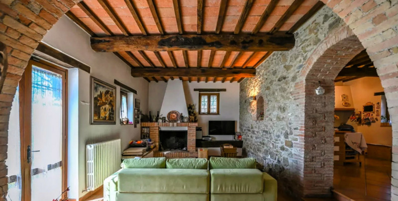 A pochi minuti dal confine con la Toscana, si trova questo ampio casale in pietra di origini antiche, situato nei dintorni di Tuoro sul Trasimeno. La proprietà si sviluppa su due livelli e consta due unità abitative indipendenti di circa 220 mq e ...