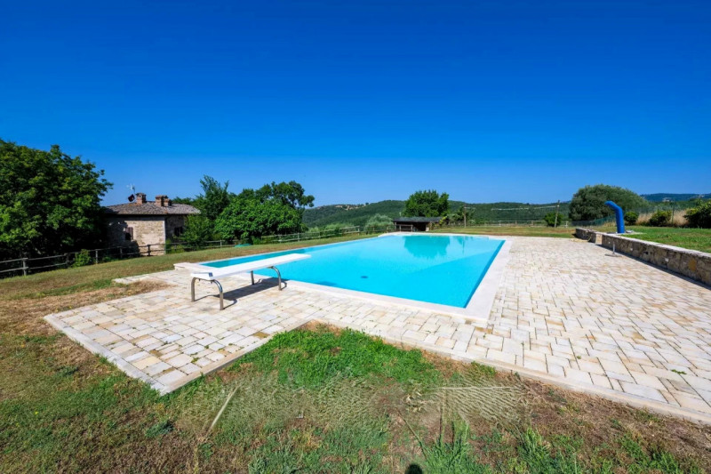 Sulle incantevoli colline umbre, in posizione panoramica e riservata tra Perugia e il Lago Trasimeno, sorge questo elegante casale in pietra di circa 340 m², finemente ristrutturato agli inizi degli anni 2000 e mantenuto in condizioni impeccabili....
